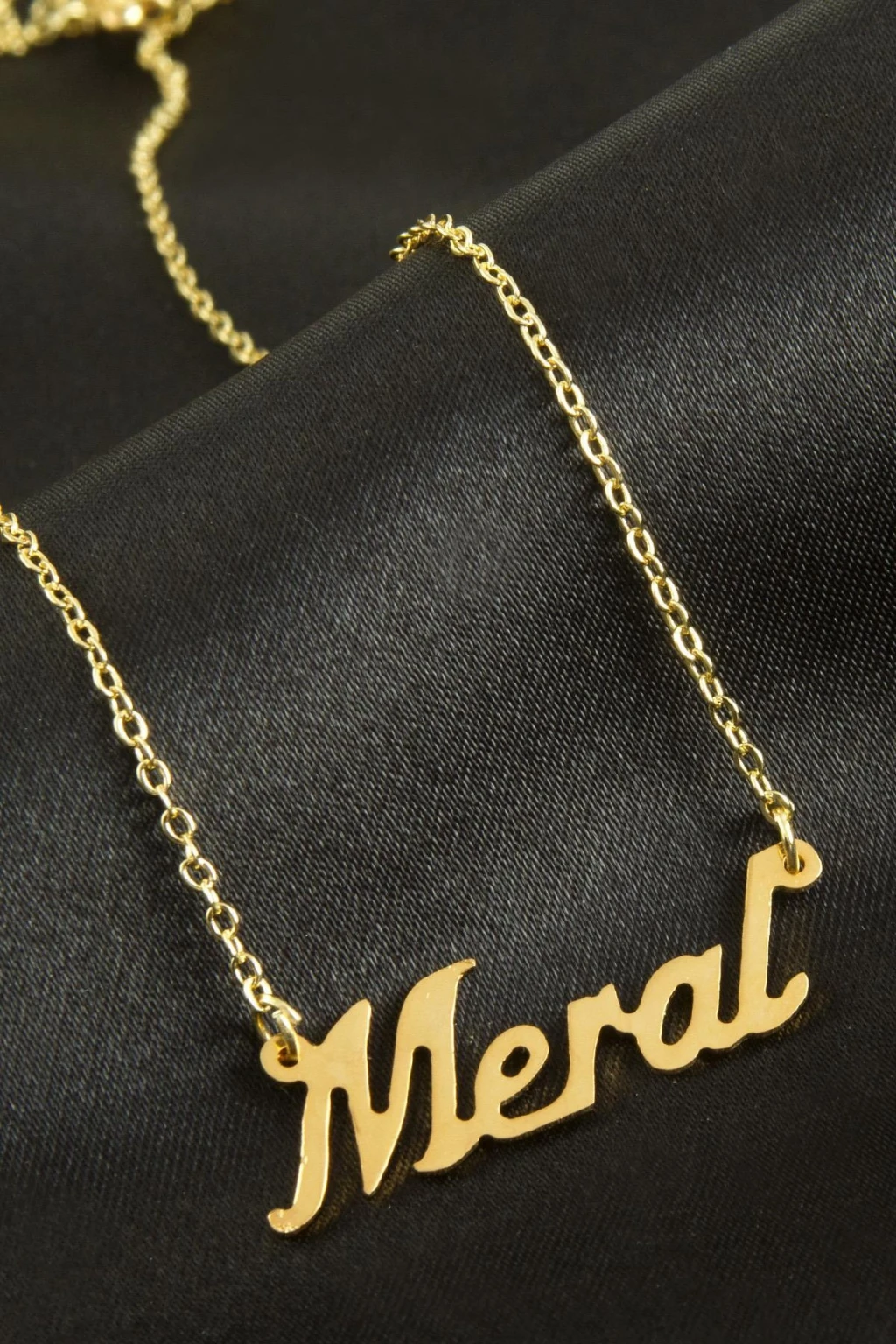 Meral isimli kolye. İsimli kolye pirinç madeninden ve altın kaplamalıdır. Kişiye özel üretilmektedir.Yazdırmak istediğiniz ismi bize mesaj olarak iletmeniz gerekmektedir. Kullanıma bağlı olarak uzun süre kullanıma uygundur. Ürün malzemesi 1.sınıf kalitededir. Ürün ve zinciri sarı renktedir. Ürün zincir boyu 45 cm ve ürün üzerindeki isimler yaklaşık 3 cmdir. İsim boyları ürün ismine göre degişiklik göstermektedir.