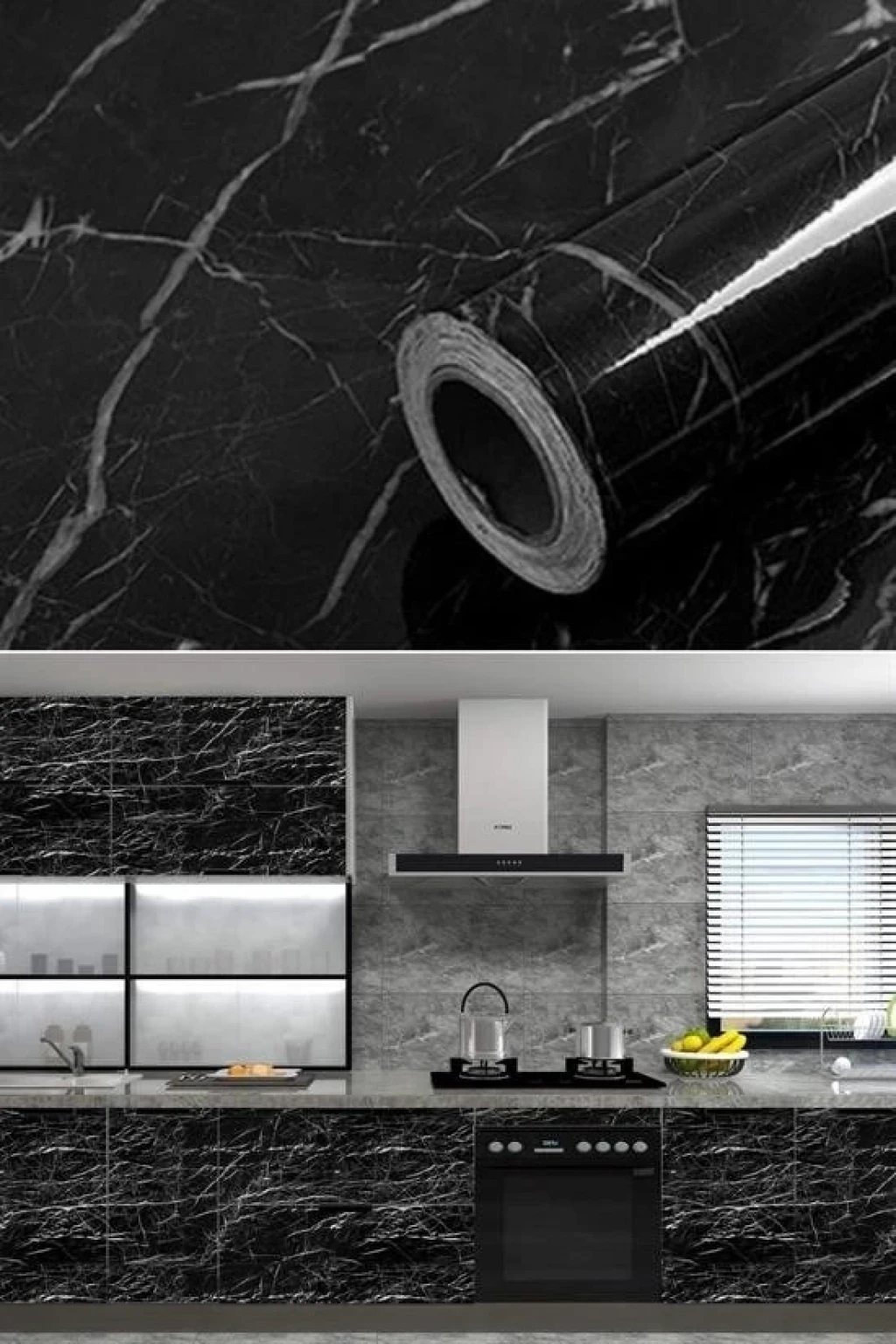 Mermer Desenli Masa Tezgah Mutfak Duvar Kağıdı Su Geçirmez Yapışkanlı Folyo Sticker Siyah 5x0,6m