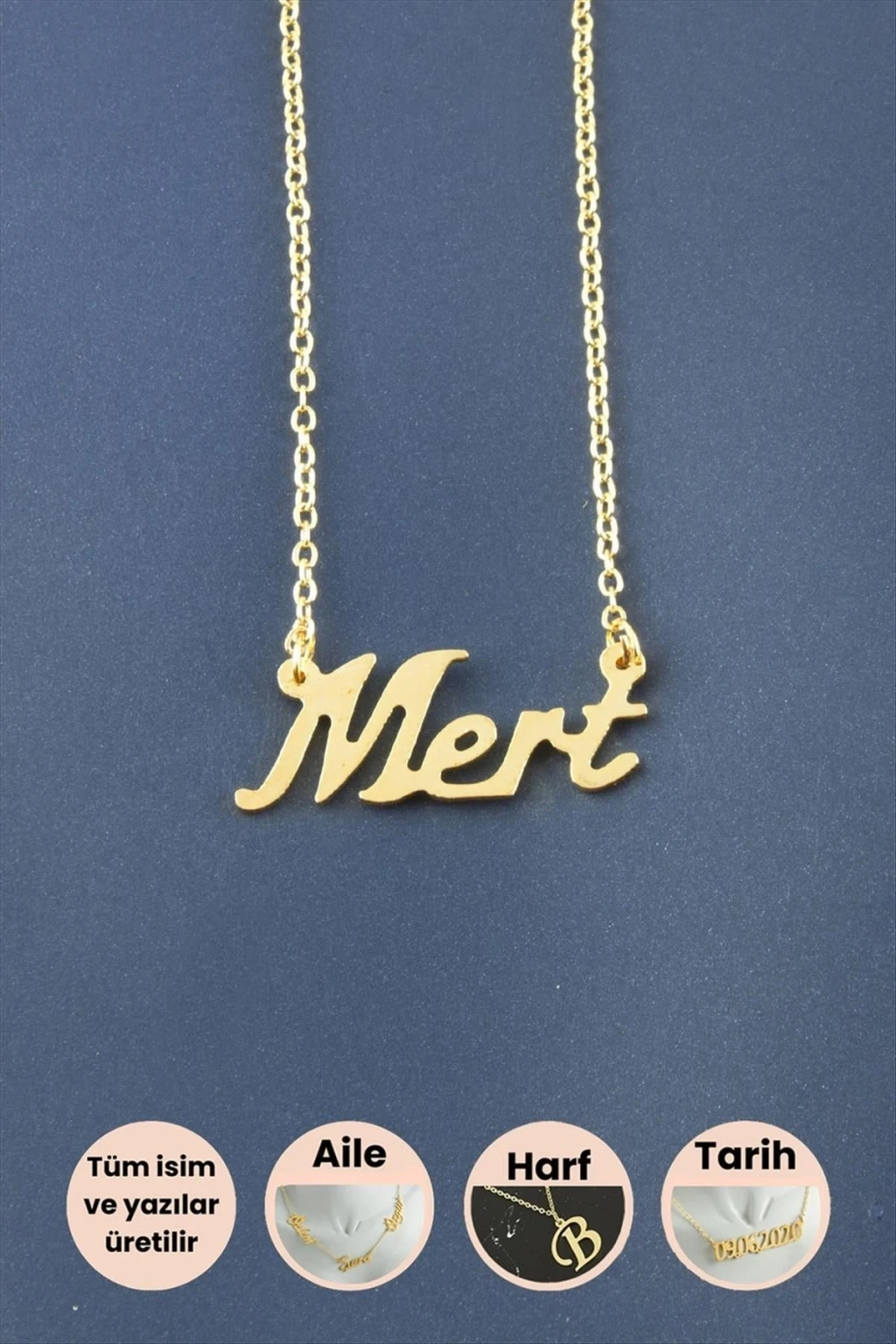 Mert İsimli Kolye; İsimli kolye pirinç madeninden ve altın kaplamalıdır. Kişiye özel üretilmektedir. Yazdırmak istediğiniz ismi bize mesaj olarak iletmeniz gerekmektedir. Kullanıma bağlı olarak uzun süre kullanıma uygundur. Ürün malzemesi 1.sınıf kalitededir. Ürün ve zinciri sarı renktedir. Ürün zincir boyu 45 cm ve ürün üzerindeki isimler yaklaşık 3 cmdir. İsim boyları ürün ismine göre degişiklik göstermektedir.