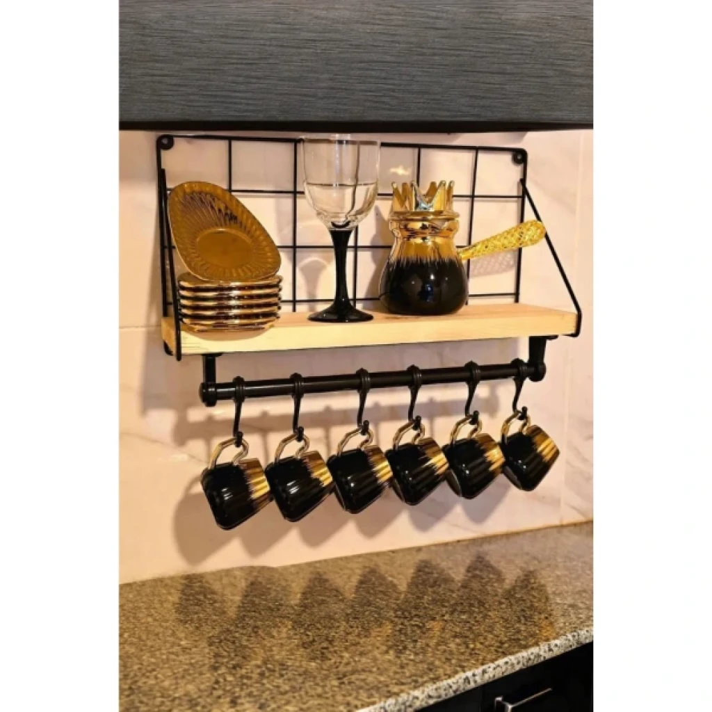 Metal Askılıklı Kahve Köşesi Rafı