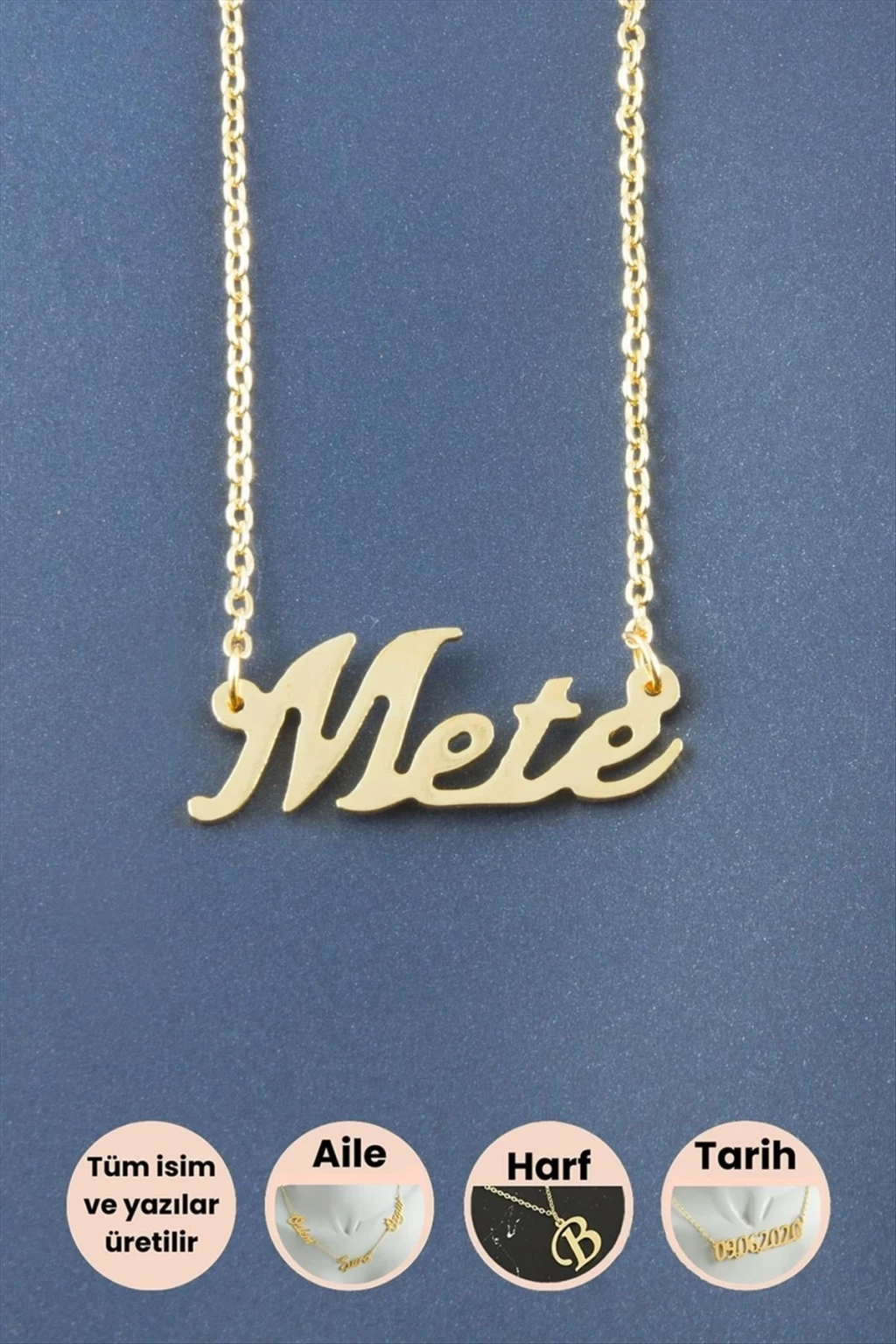 Mete İsimli Kolye; İsimli kolye pirinç madeninden ve altın kaplamalıdır. Kişiye özel üretilmektedir. Yazdırmak istediğiniz ismi bize mesaj olarak iletmeniz gerekmektedir. Kullanıma bağlı olarak uzun süre kullanıma uygundur. Ürün malzemesi 1.sınıf kalitededir. Ürün ve zinciri sarı renktedir. Ürün zincir boyu 45 cm ve ürün üzerindeki isimler yaklaşık 3 cmdir. İsim boyları ürün ismine göre degişiklik göstermektedir.