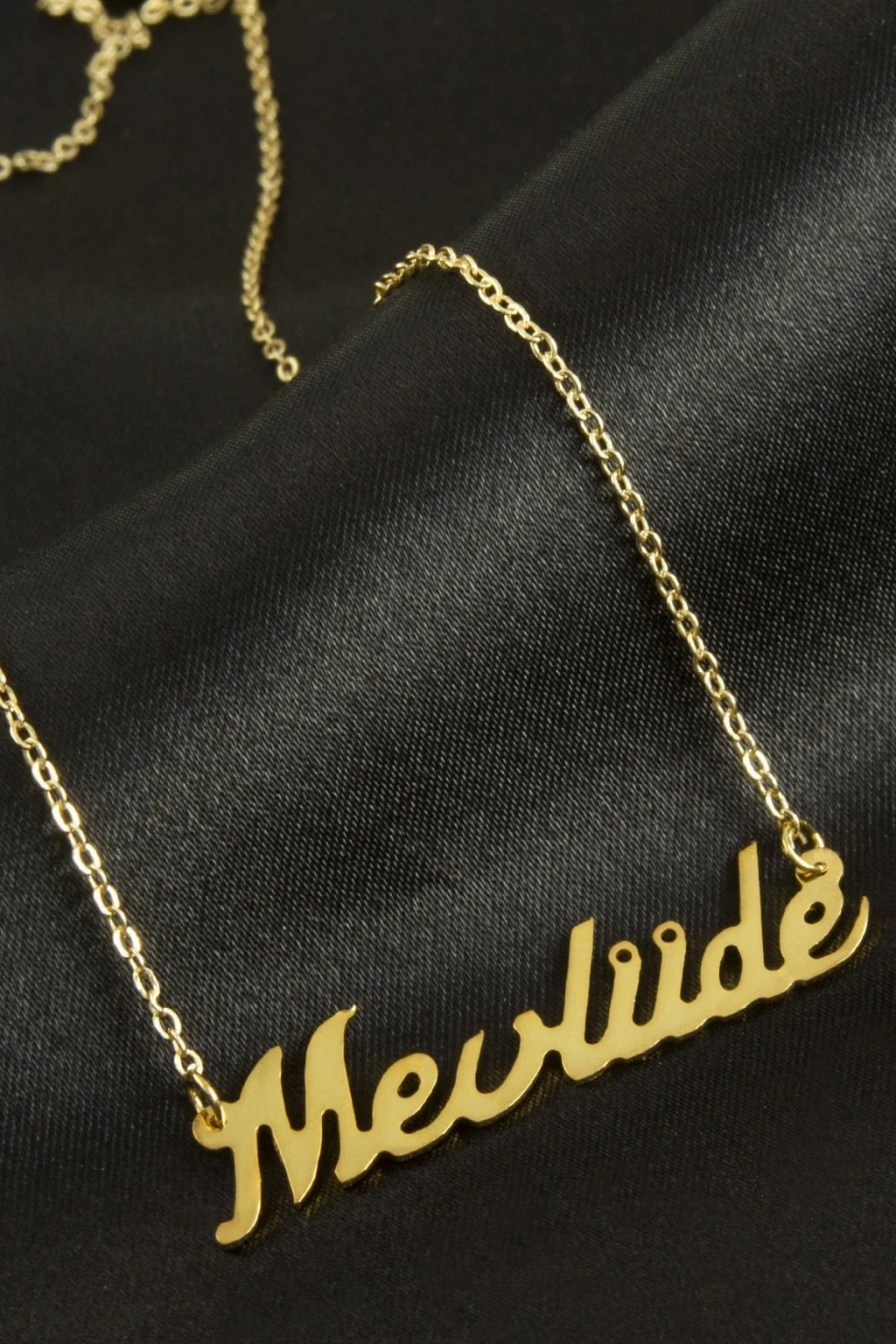 Mevlüde İsimli Kolye. İsimli kolye pirinç madeninden ve altın kaplamalıdır. Kişiye özel üretilmektedir.Yazdırmak istediğiniz ismi bize mesaj olarak iletmeniz gerekmektedir. Kullanıma bağlı olarak uzun süre kullanıma uygundur. Ürün malzemesi 1.sınıf kalitededir. Ürün ve zinciri sarı renktedir. Ürün zincir boyu 45 cm ve ürün üzerindeki isimler yaklaşık 3 cmdir. İsim boyları ürün ismine göre degişiklik göstermektedir.