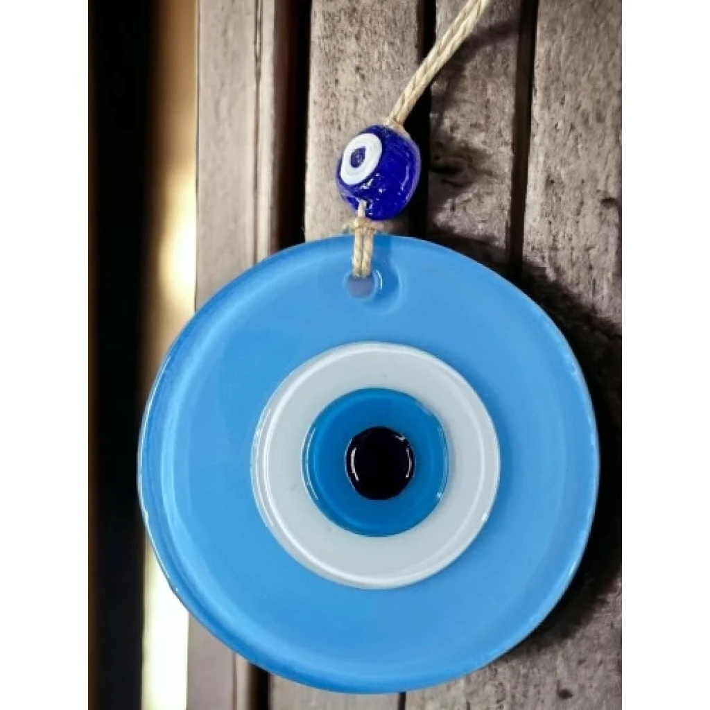 Mini boy bebe mavisi renk nazar boncuklu duvar süsümüz tamamen el işçiliği ile üretilmiştir. Tasarım harikası el yapımı nazar boncuklu duvar süsümüz 10 x 10 santimetre ölçülerindedir. Ürünümüz ip dahil 23 santimetre boyundadır.