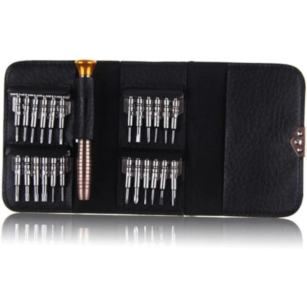 MİNİ CÜZDAN TORNAVİDA SETİMini Cüzdan Tornavida Seti: Küçük, Pratik ve Güçlü!Mini Cüzdan Tornavida Seti, hassas elektronik cihazlar ve cep telefonları gibi küçük tamiratlar için ideal bir çözümdür. Set, 24 adet tornavida ucu ve 1 adet tornavida kaleminden oluşan toplam 25 parçadan oluşmaktadır. Kompakt boyutlarıyla (10.5 cm x 6.5 cm x 2 cm) her yere kolayca taşınabilir ve her zaman elinizin altında bulundurabilirsiniz.Dayanıklı çıtçıtı sayesinde cüzdan sağlam bir şekilde kapanır ve açılmaz. Tornavida uçları, cüzdanın içinde güvenli bir şekilde sabitlenmiştir ve yerinden çıkmaz. Sadece 112 gram ağırlığında olan bu set, hafifliği ve taşınabilirliği ile kullanım kolaylığı sunar.Mini Cüzdan Tornavida Seti, profesyonel kullanıcılar için geliştirilmiş olup, hassas elektronik ürünlerin ve cep telefonlarının tamiratında en iyi yardımcınız olacak şekilde tasarlanmıştır. Ergonomik tasarımı ve yüksek kaliteli malzemeleri ile uzun ömürlü kullanım sağlar. Kompakt ve pratik bu set ile her türlü tamirat işlemini kolaylıkla gerçekleştirebilirsiniz.Paket İçeriği1 adet mini cüzdan tornavida seti