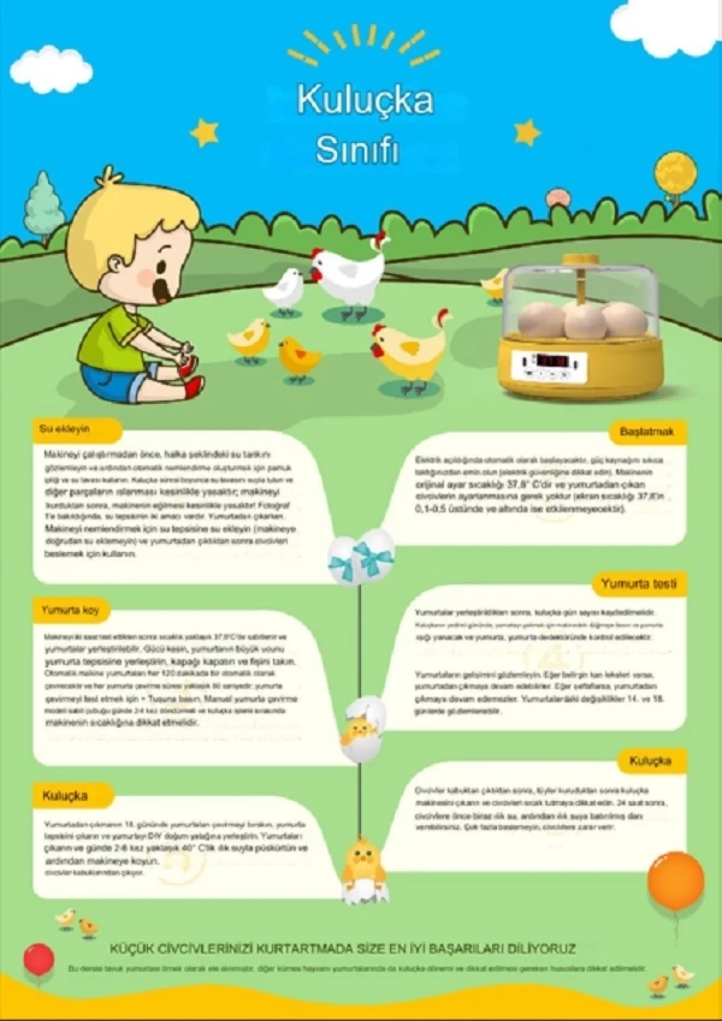 5. Geniş Kullanım Alanı: Bu kuluçka makinesi, bıldırcın, tavuk veya diğer kümes hayvanlarının yumurtalarını kuluçkaya yatırmak için uygundur.