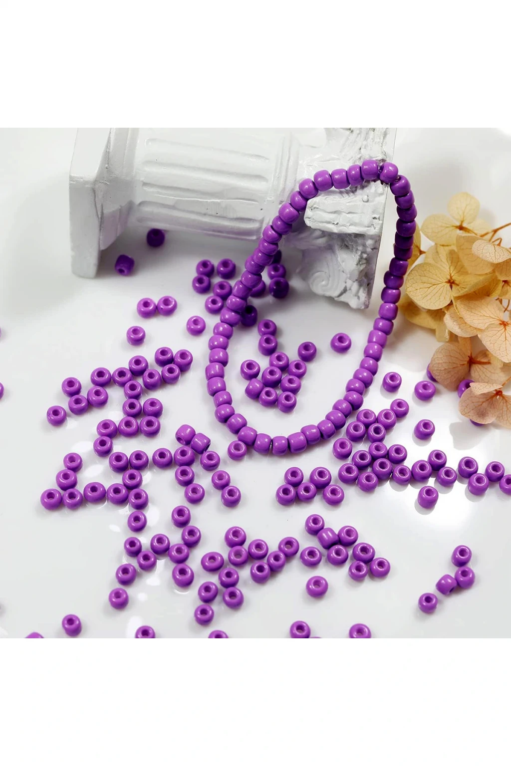 Mor Renk 4 mm Yaklaşık 1100 adet / 100 gram Cam Boncuk Oya Yazma Bileklik ve Kolye