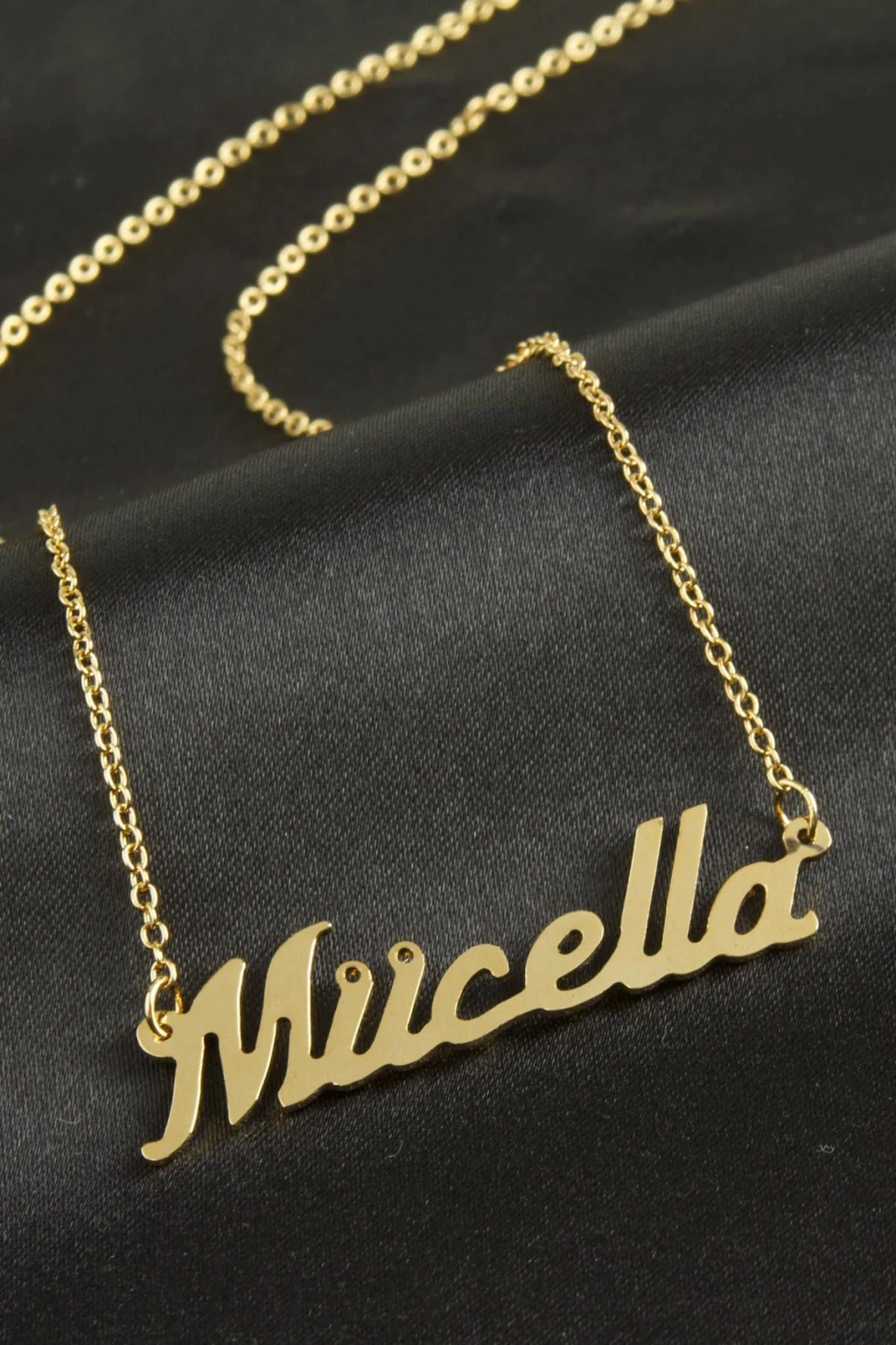 Mücella isimli kolye. İsimli kolye pirinç madeninden ve altın kaplamalıdır. Kişiye özel üretilmektedir.Yazdırmak istediğiniz ismi bize mesaj olarak iletmeniz gerekmektedir. Kullanıma bağlı olarak uzun süre kullanıma uygundur. Ürün malzemesi 1.sınıf kalitededir. Ürün ve zinciri sarı renktedir. Ürün zincir boyu 45 cm ve ürün üzerindeki isimler yaklaşık 3 cmdir. İsim boyları ürün ismine göre degişiklik göstermektedir.