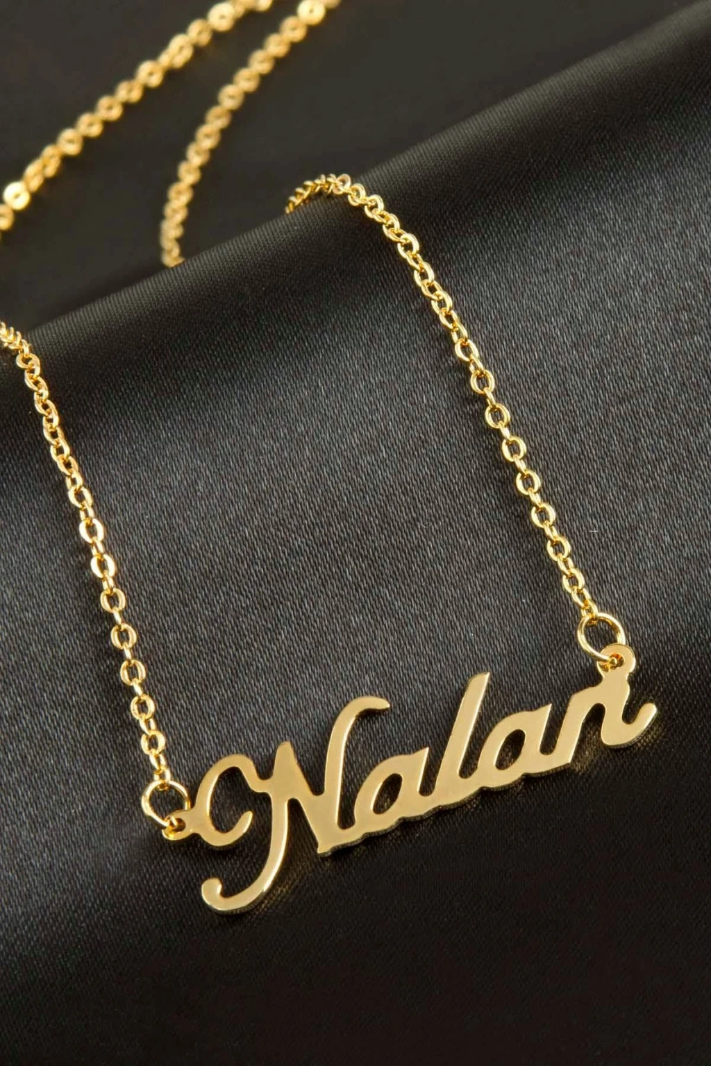 Nalan isimli kolye. İsimli kolye pirinç madeninden ve altın kaplamalıdır. Kişiye özel üretilmektedir.Yazdırmak istediğiniz ismi bize mesaj olarak iletmeniz gerekmektedir. Kullanıma bağlı olarak uzun süre kullanıma uygundur. Ürün malzemesi 1.sınıf kalitededir. Ürün ve zinciri sarı renktedir. Ürün zincir boyu 45 cm ve ürün üzerindeki isimler yaklaşık 3 cmdir. İsim boyları ürün ismine göre degişiklik göstermektedir.