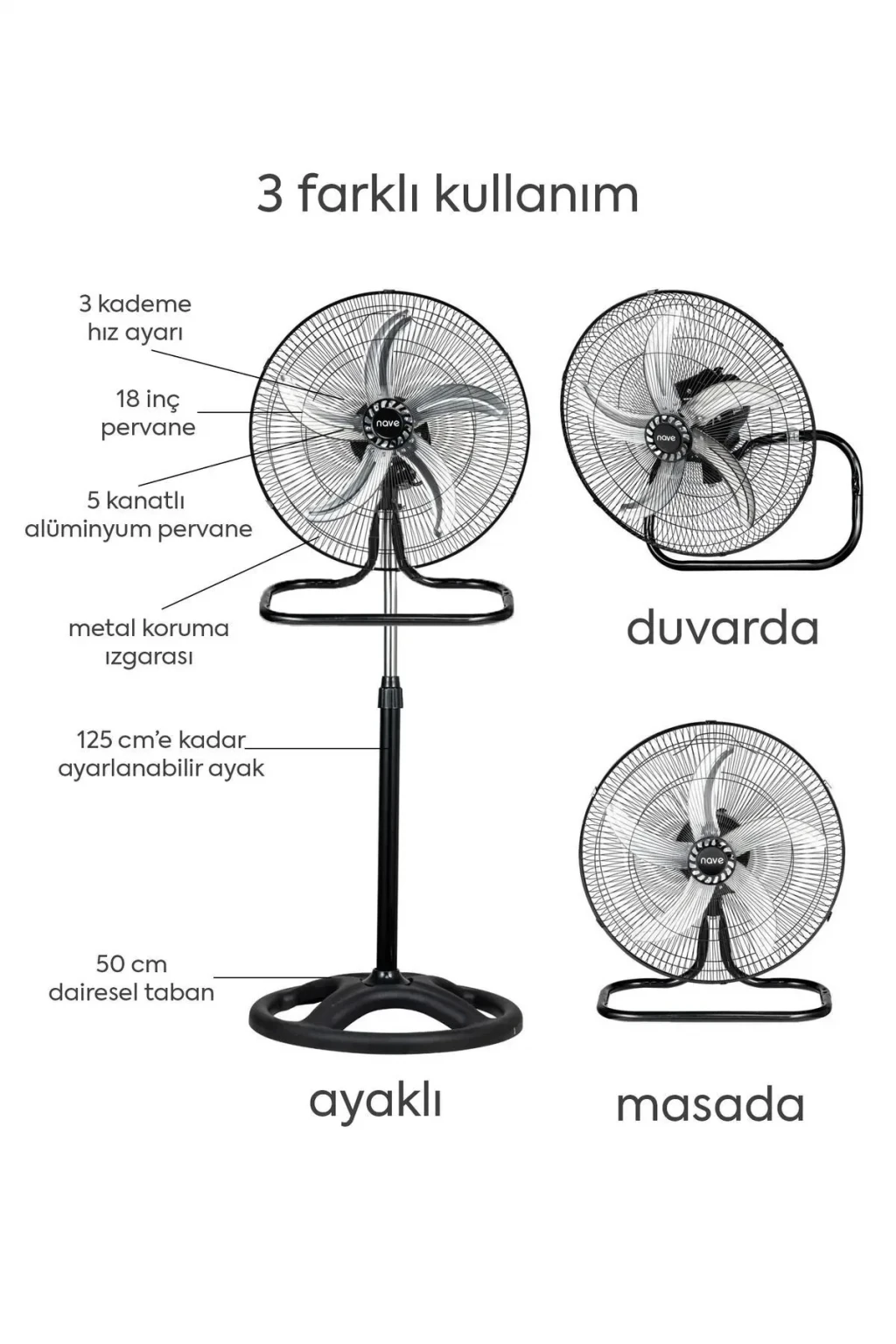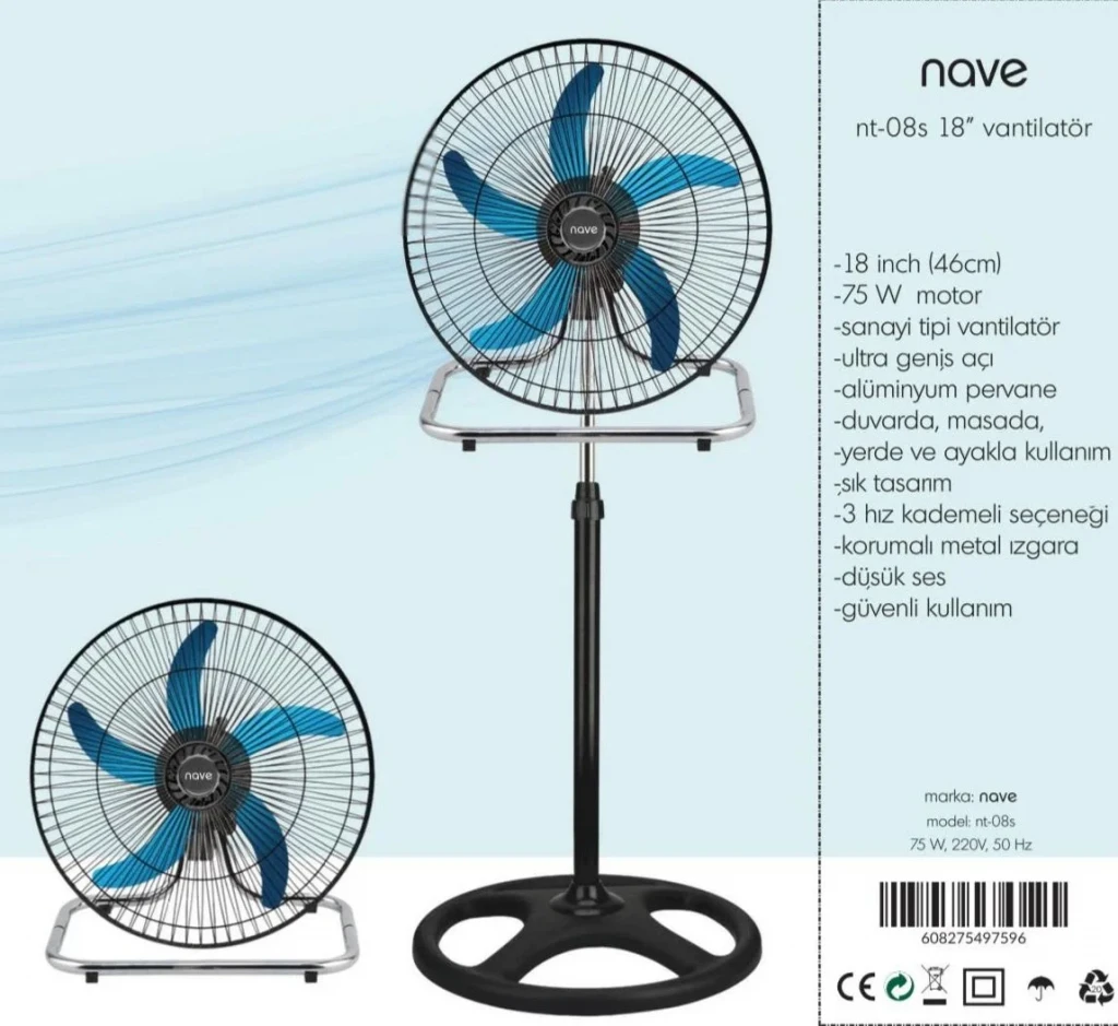Nave Vantilatör NT-08S 18 Inch. Sanayi tipi vantilatör. 18" ( 46 cm.) 75 Watt motor