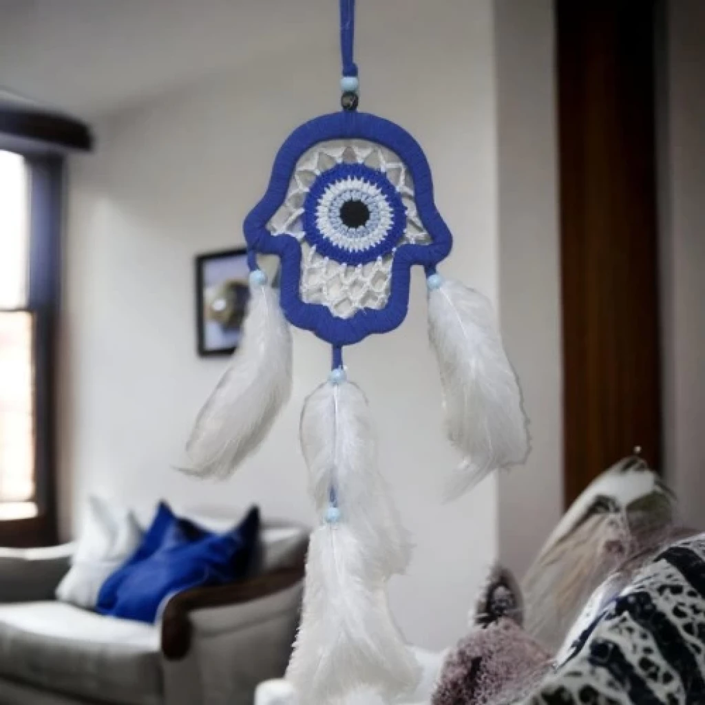 Nazar Boncuğu Motifli Fatma Ana Eli Duvar Süsü El İşçiliği Duvar DekoruÜrünümüz tamamen el işçiliği ile üretilmektedir.Ürün Ebatları:Genişliği: 12 cmUzunluğu: 13 cmİp Dahil Uzunluğu: 40 cm