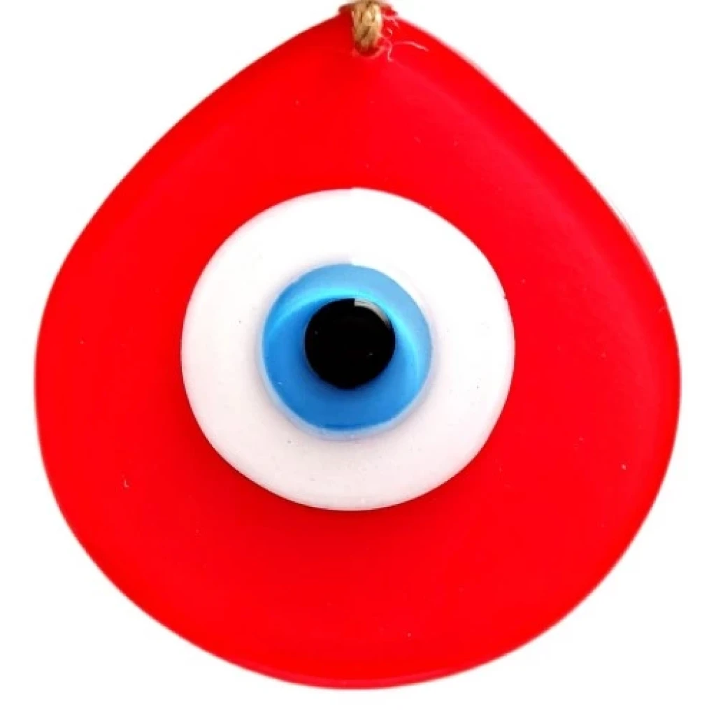 Orta Boy Şeffaf Kırmızı Damla Desen Nazar Boncuklu Duvar Dekoru Cam Duvar Süsü