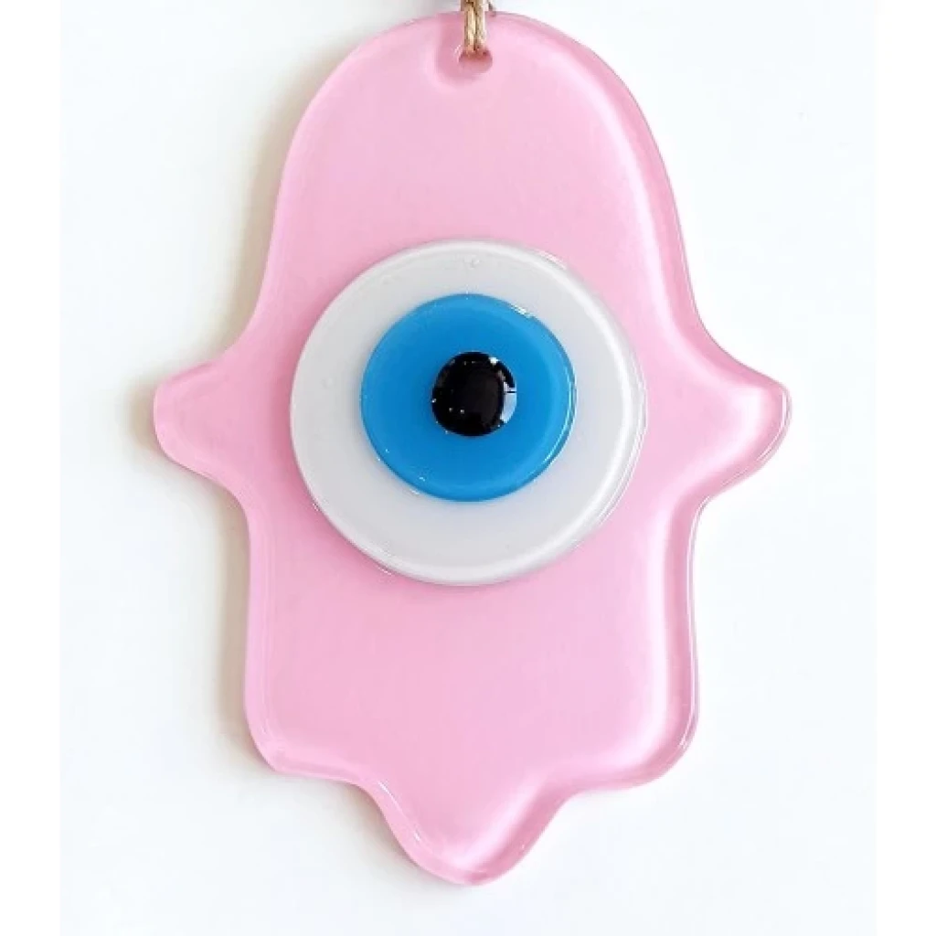 Nazar Boncuklu Pembe Renk Fatma Ana Bereket Eli Cam Duvar Süsü