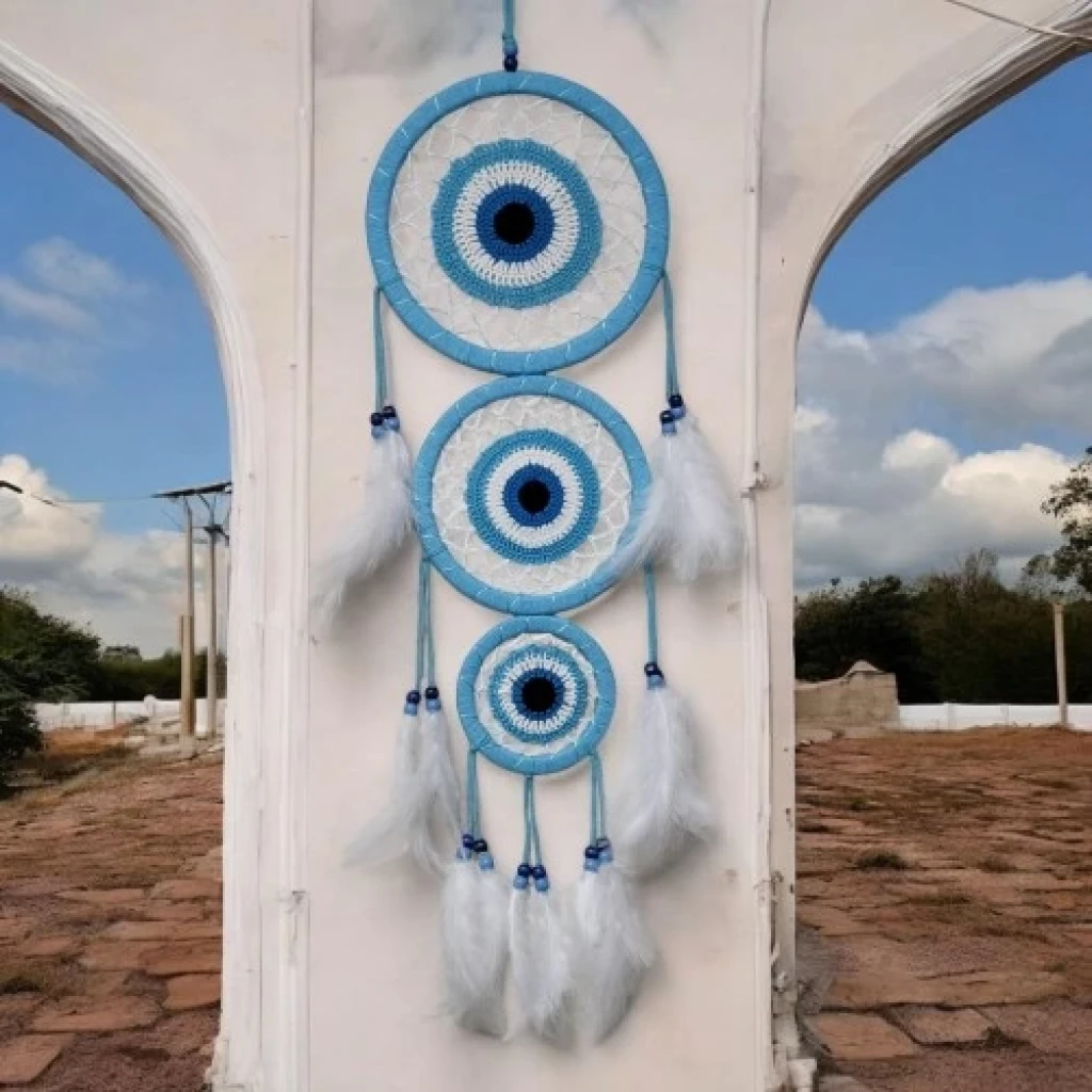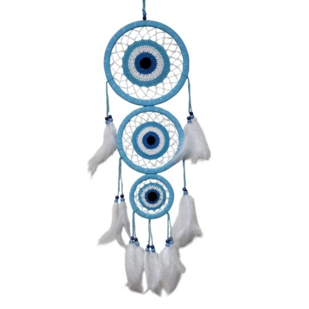Ürünümüz üç adet çemberden oluşmaktadır. Büyük halka 21 santimetre çapında, orta boy olan 17 santimetre çapındadır. Küçük çember ise 12 santimetre çapındadır. Ürünümüz yaklaşık 88 santimetre boyundadır. Duvar süsümüz kuş tüyleri ile süslenmiştir. Ürünümüzde doğal iplik kullanılmaktadır.