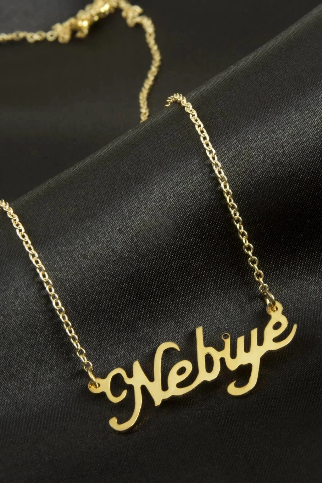 Nebiye isimli kolye. İsimli kolye pirinç madeninden ve altın kaplamalıdır. Kişiye özel üretilmektedir.Yazdırmak istediğiniz ismi bize mesaj olarak iletmeniz gerekmektedir. Kullanıma bağlı olarak uzun süre kullanıma uygundur. Ürün malzemesi 1.sınıf kalitededir. Ürün ve zinciri sarı renktedir. Ürün zincir boyu 45 cm ve ürün üzerindeki isimler yaklaşık 3 cmdir. İsim boyları ürün ismine göre degişiklik göstermektedir.