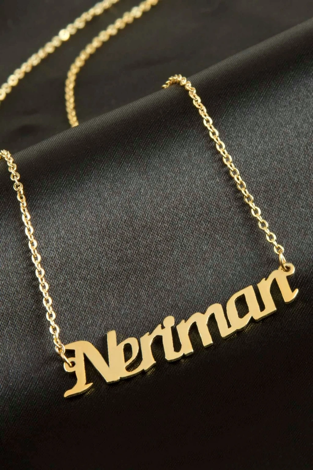 Neriman isimli kolye. İsimli kolye pirinç madeninden ve altın kaplamalıdır. Kişiye özel üretilmektedir.Yazdırmak istediğiniz ismi bize mesaj olarak iletmeniz gerekmektedir. Kullanıma bağlı olarak uzun süre kullanıma uygundur. Ürün malzemesi 1.sınıf kalitededir. Ürün ve zinciri sarı renktedir. Ürün zincir boyu 45 cm ve ürün üzerindeki isimler yaklaşık 3 cmdir. İsim boyları ürün ismine göre degişiklik göstermektedir.