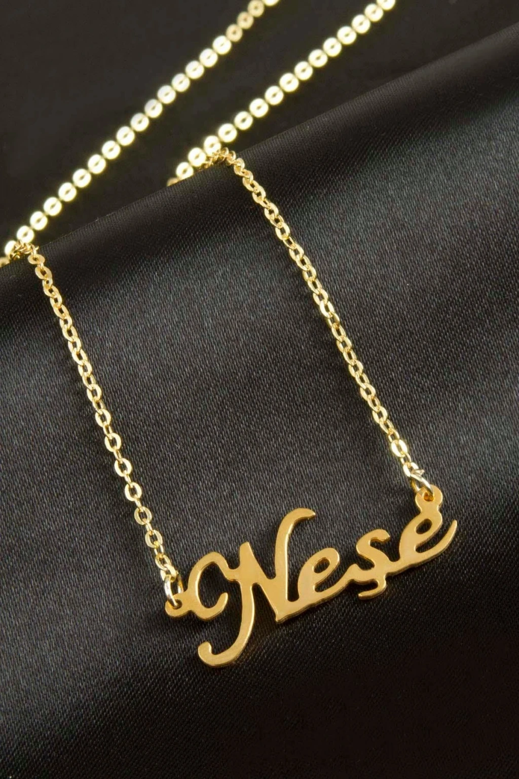 Neşe isimli kolye. İsimli kolye pirinç madeninden ve altın kaplamalıdır. Kişiye özel üretilmektedir.Yazdırmak istediğiniz ismi bize mesaj olarak iletmeniz gerekmektedir. Kullanıma bağlı olarak uzun süre kullanıma uygundur. Ürün malzemesi 1.sınıf kalitededir. Ürün ve zinciri sarı renktedir. Ürün zincir boyu 45 cm ve ürün üzerindeki isimler yaklaşık 3 cmdir. İsim boyları ürün ismine göre degişiklik göstermektedir.