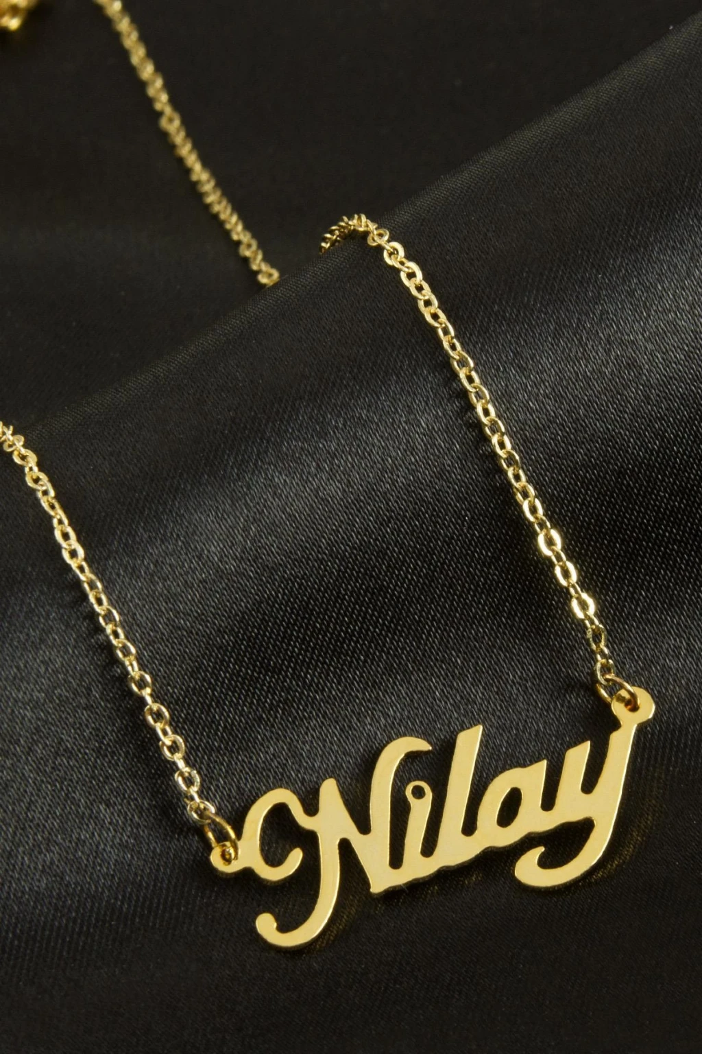 Nilay İsimli Kolye. İsimli kolye pirinç madeninden ve altın kaplamalıdır. Kişiye özel üretilmektedir.Yazdırmak istediğiniz ismi bize mesaj olarak iletmeniz gerekmektedir. Kullanıma bağlı olarak uzun süre kullanıma uygundur. Ürün malzemesi 1.sınıf kalitededir. Ürün ve zinciri sarı renktedir. Ürün zincir boyu 45 cm ve ürün üzerindeki isimler yaklaşık 3 cmdir. İsim boyları ürün ismine göre degişiklik göstermektedir.