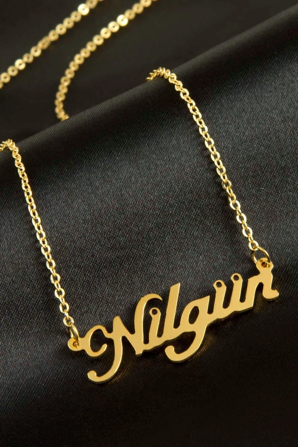 Nilgün isimli kolye. İsimli kolye pirinç madeninden ve altın kaplamalıdır. Kişiye özel üretilmektedir.Yazdırmak istediğiniz ismi bize mesaj olarak iletmeniz gerekmektedir. Kullanıma bağlı olarak uzun süre kullanıma uygundur. Ürün malzemesi 1.sınıf kalitededir. Ürün ve zinciri sarı renktedir. Ürün zincir boyu 45 cm ve ürün üzerindeki isimler yaklaşık 3 cmdir. İsim boyları ürün ismine göre degişiklik göstermektedir.