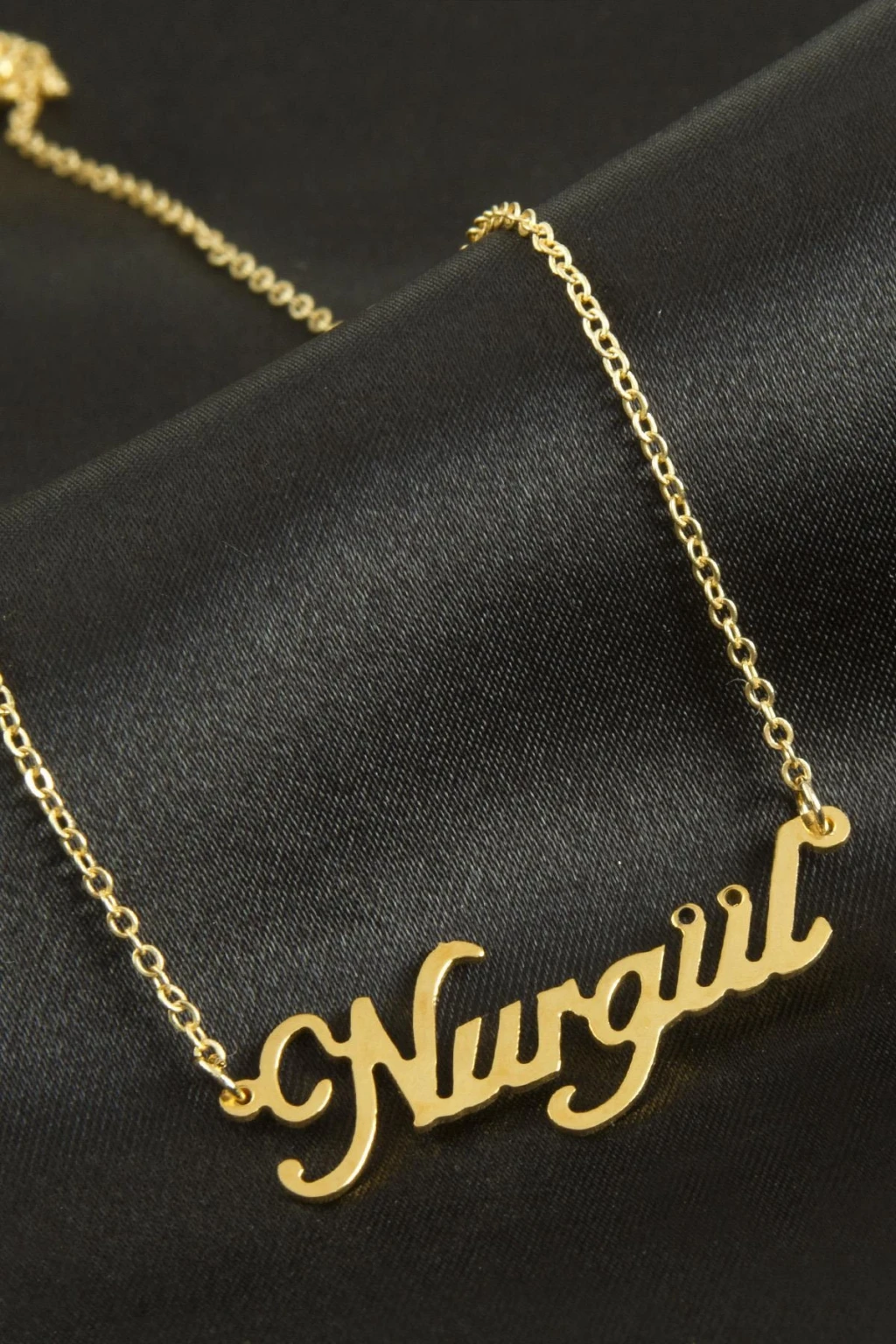Nurgül İsimli Kolye. İsimli kolye pirinç madeninden ve altın kaplamalıdır. Kişiye özel üretilmektedir.Yazdırmak istediğiniz ismi bize mesaj olarak iletmeniz gerekmektedir. Kullanıma bağlı olarak uzun süre kullanıma uygundur. Ürün malzemesi 1.sınıf kalitededir. Ürün ve zinciri sarı renktedir. Ürün zincir boyu 45 cm ve ürün üzerindeki isimler yaklaşık 3 cmdir. İsim boyları ürün ismine göre degişiklik göstermektedir.