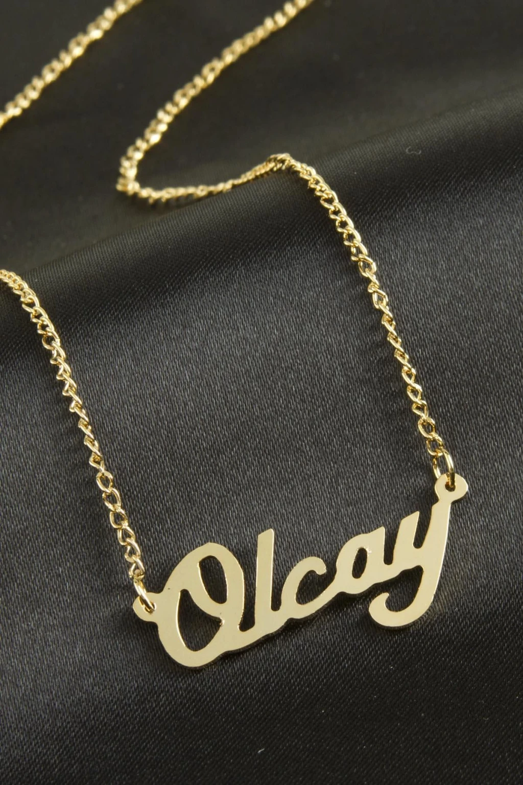 Olcay isimli kolye. İsimli kolye pirinç madeninden ve altın kaplamalıdır. Kişiye özel üretilmektedir.Yazdırmak istediğiniz ismi bize mesaj olarak iletmeniz gerekmektedir. Kullanıma bağlı olarak uzun süre kullanıma uygundur. Ürün malzemesi 1.sınıf kalitededir. Ürün ve zinciri sarı renktedir. Ürün zincir boyu 45 cm ve ürün üzerindeki isimler yaklaşık 3 cmdir. İsim boyları ürün ismine göre degişiklik göstermektedir.