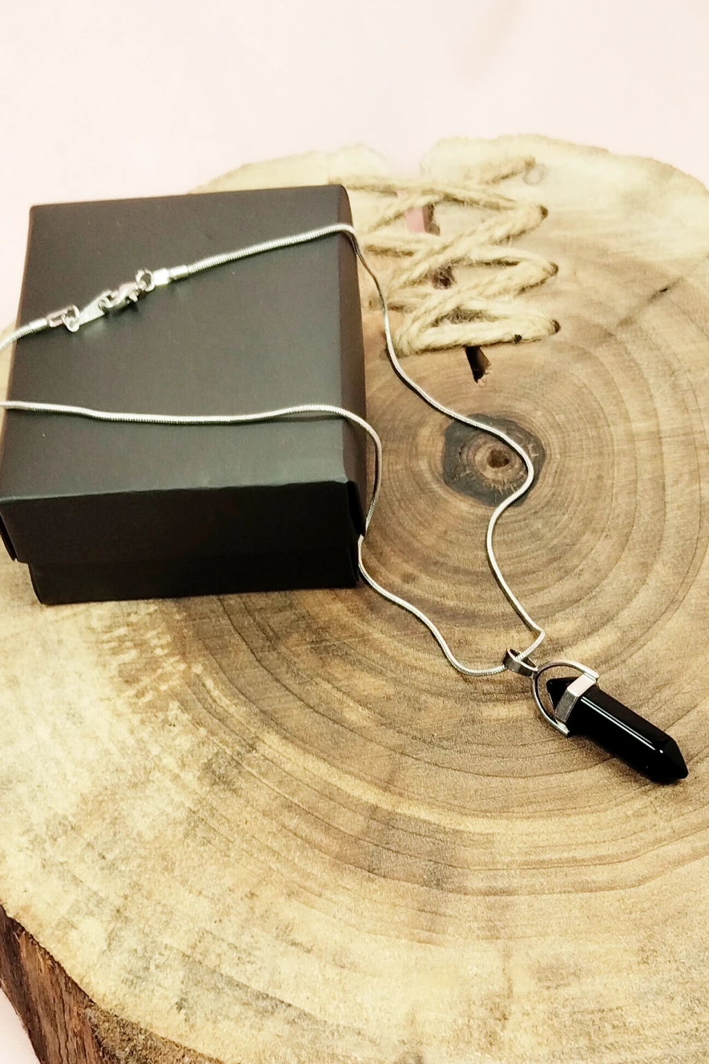Obsidyen Doğal Taşı Zincirli El Yapımı Tasarımlı Kolye Uç: 3,5 cm Zincir: 20 cm Kutulu