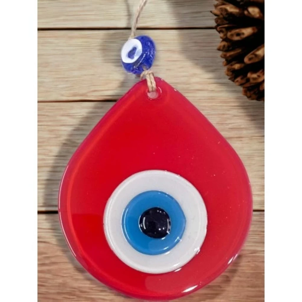 Mini kırmızı renk nazar boncuklu duvar süsümüz tamamen el işçiliği ile üretilmiştir. Tasarım harikası el yapımı nazar boncuklu duvar süsümüz 10 x 12 santimetre ölçülerindedir. Ürünümüz ip dahil 21 santimetre boyundadır.