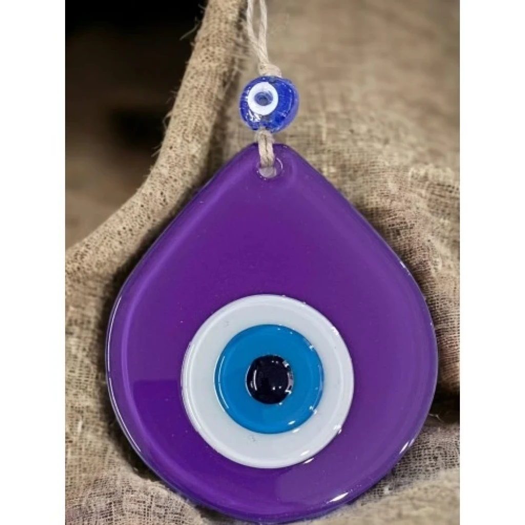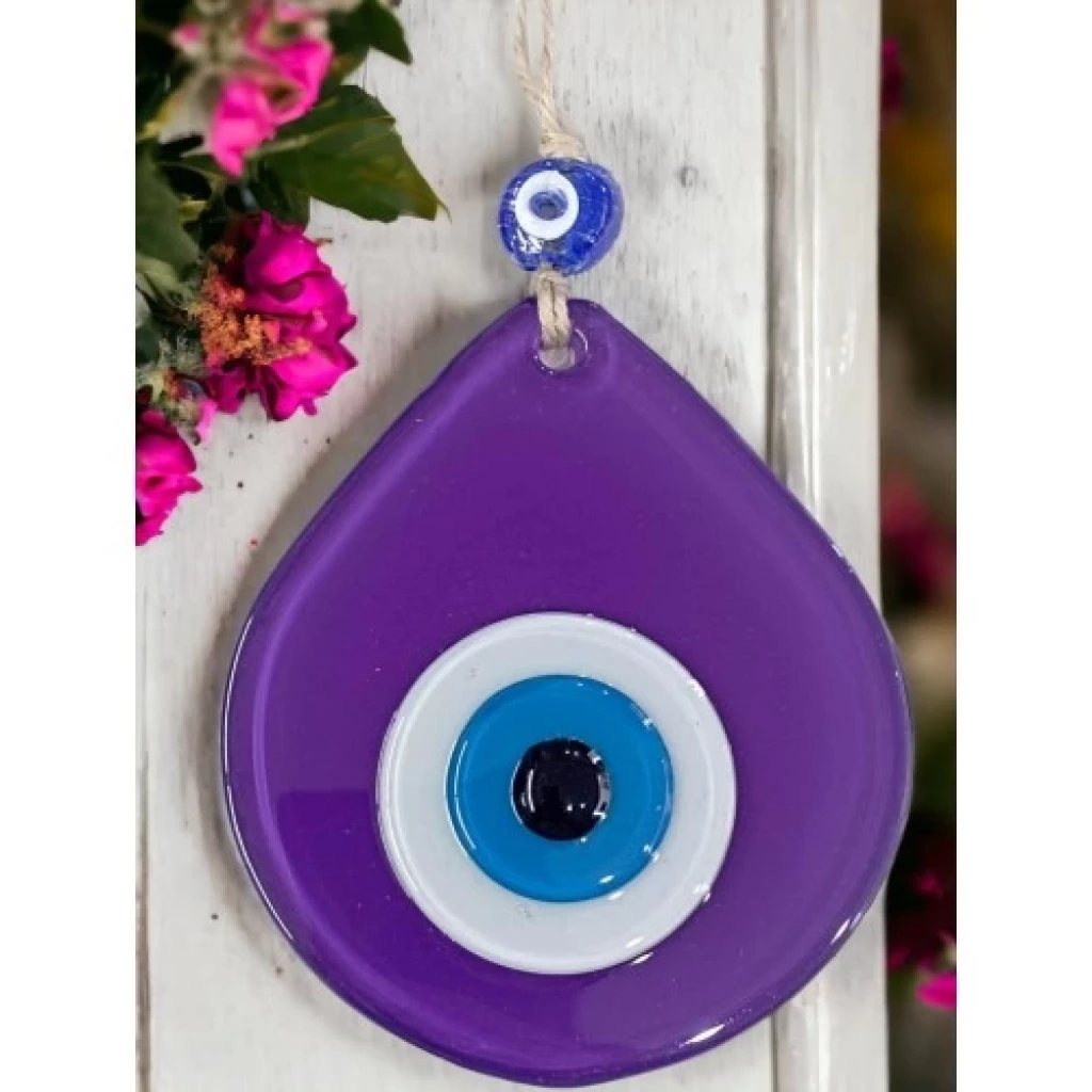 Mini mor renk nazar boncuklu duvar süsümüz tamamen el işçiliği ile üretilmiştir. Tasarım harikası el yapımı nazar boncuklu duvar süsümüz 10 x 12 santimetre ölçülerindedir. Ürünümüz ip dahil 21 santimetre boyundadır.