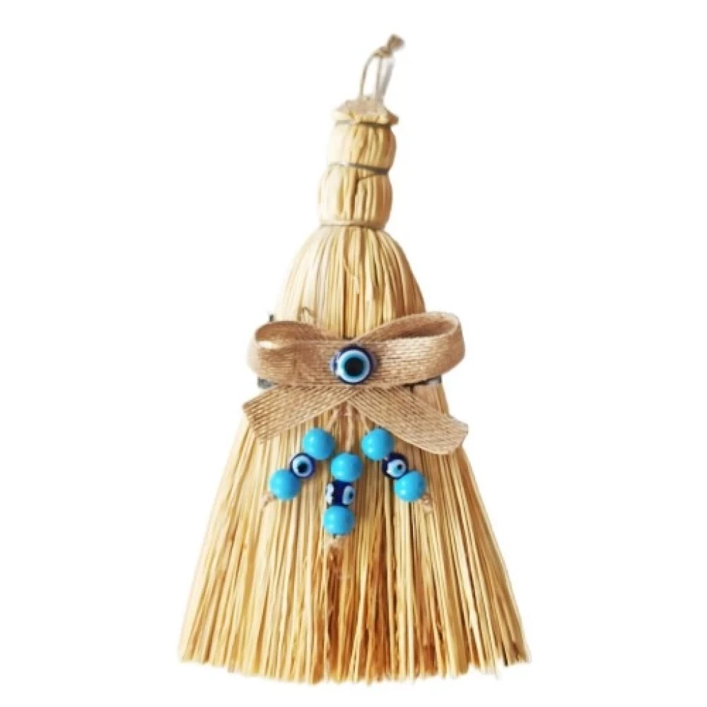 Otantik Ahşap Boncuklu Mini Süpürge Nazar Boncuklu Duvar Süsü