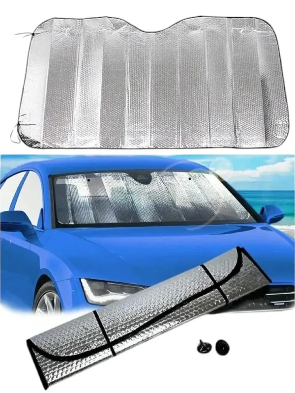 Araba Ön Cam Güneşliği güneş ışınlarını geri yansıtan tasarımıyla aracınızı daha serin tutmanıza yardımcı olacak. Yaz günlerinde aracınızı güneş alan bir alana park etmek zorunda kaldığınızda aracınızı aşırı derecede ısınmış bir şekilde bulabilirsiniz. Ön cam güneşliği metalize reflektörlü aluminyum yüzeyiyle güneş ışığını %99'a kadar bloke ederek daha konforlu bir yolculuk olanağı sunar. Aracınızı daha kısa süre içerisinde serinletebilmenize yardımcı olarak zaman kaybını ve klima kullanımına bağlı yakıt tüketimini azaltmanızı sağlar. Süngerli iç yapısı ürüne ekstra izolasyon yapabilme özelliği katarak aracınızı aşırı ısınmaya karşı korurken, aracınızın deri, plastik ve kumaş aksamlarının da zararlı ışınlara bağlı olarak hasar görmesini engeller. Katlanabilme özelliğiyle aracınızda yer işgal etmeden kolayca taşıyabileceğiniz ürün, 130 cm'lik genişliği ve 60 cm'lik yüksekliğiyle tüm standart otomobil modelleriyle uyumludur.  Ürün Özellikleri: Metalize reflektörlü otomobil güneşliğidir Aracınızı aşırı ısınmaya karşı korur Süngerli iç yapısıyla ekstra izolasyon sunar Deri, plastik ve kumaş aksamları zararlı ışınlardan korur Tüm standart otomobil modelleriyle uyumludur Kolayca takılıp sökülebilir, defalarca kullanılabilir Katlanabilir yapısıyla taşınması ve saklanması kolaydır Ürün Ölçüleri Açık Ebat: 130 cm x 60 cm