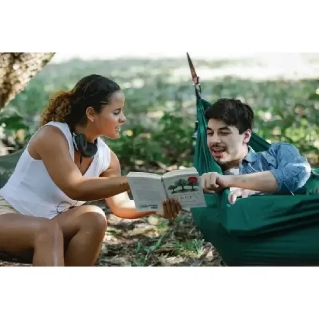 Outdoor hamak, doğada konforlu ve keyifli bir dinlenme deneyimi sunmak için tasarlanmış pratik bir üründür. Çabuk kuruyan %100 naylon kumaştan üretilmiştir, bu sayede dayanıklı ve hafif yapısıyla dikkat çeker. Maksimum 200 kg taşıma kapasitesine sahip olan bu hamak, hem tek kişi hem de iki kişi kullanımı için uygundur. Açık halde 275x140 cm ölçülerinde geniş bir alan sunarken, kapalı çantasında sadece 25x13 cm boyutuna sahip olup 950 gram ağırlığı ile kolay taşınabilir. Paket içeriğinde 2 adet sağlam çelik karabina ve 2 adet dayanıklı kayış yer alır, bu sayede montaj işlemi oldukça hızlı ve zahmetsizdir. Kamp, piknik, doğa yürüyüşleri, bahçe ve balkon gibi birçok farklı kullanım alanında rahatlıkla tercih edilebilir. Kompakt tasarımı sayesinde çantanızda az yer kaplar, doğada konfor ve özgürlük sağlar.