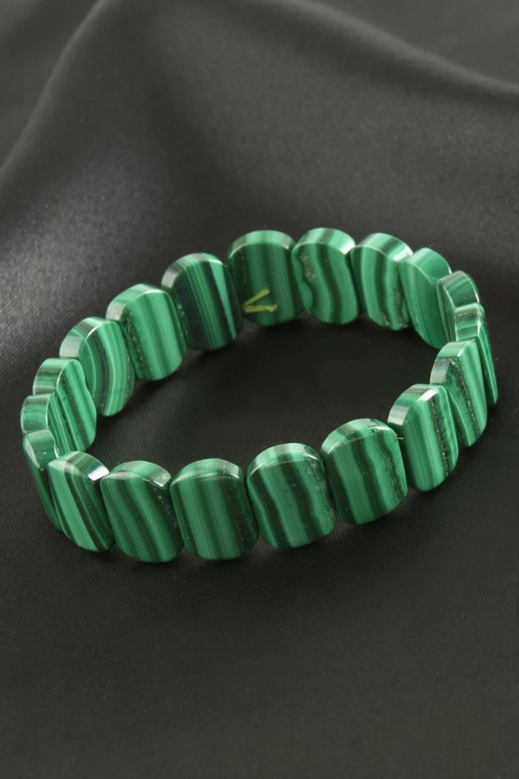 Doğal Taş Bileklik; Ürün malzemesi gerçek malahit doğaltaşından imal edilmiştir. Misina üzerine dizilerek oluşturulmuştur. Ürün kare taş boyu 12 mmdir. Ürün içersin de 22 adet taş bulunmaktadır.