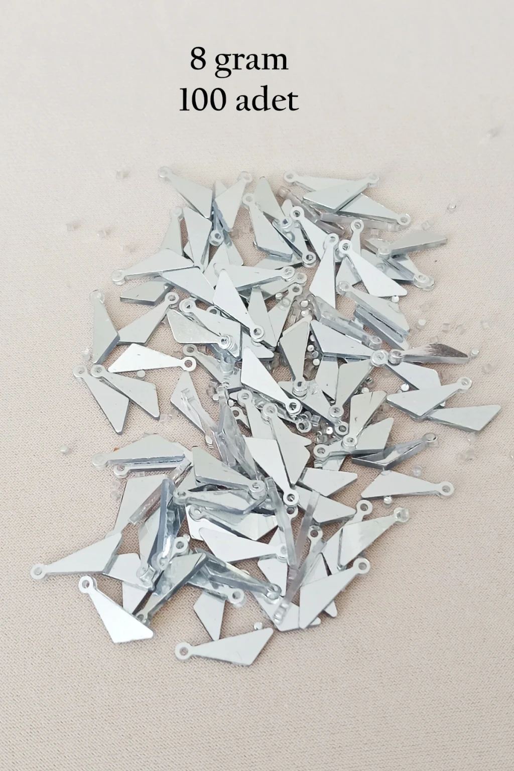 Oya Abiye Bileklik Kolye Pleksi Metalik Plastik Pul Gümüş Renk 8 gram 100 adet - BNC533