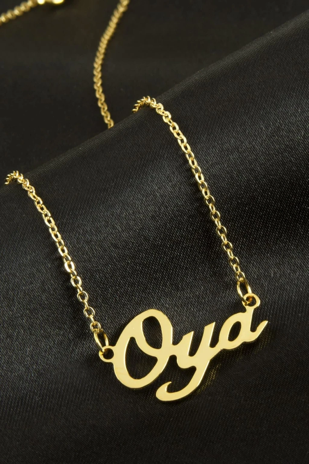 Oya isimli kolye. İsimli kolye pirinç madeninden ve altın kaplamalıdır. Kişiye özel üretilmektedir.Yazdırmak istediğiniz ismi bize mesaj olarak iletmeniz gerekmektedir. Kullanıma bağlı olarak uzun süre kullanıma uygundur. Ürün malzemesi 1.sınıf kalitededir. Ürün ve zinciri sarı renktedir. Ürün zincir boyu 45 cm ve ürün üzerindeki isimler yaklaşık 3 cmdir. İsim boyları ürün ismine göre degişiklik göstermektedir.