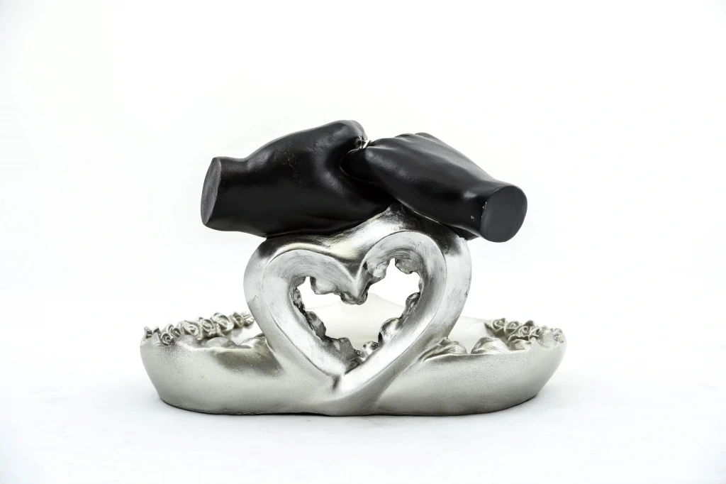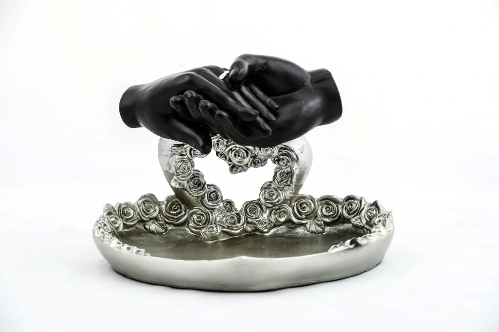ÖZEL TASARIM KALPLİ POLYESTER SUNUM TEPSİSİÜrün ÖzellikleriModern bir tasarıma sahip olan bu özel tasarım kalpli sunum tepsisi, şık ve estetik detaylarla tamamlanmıştır. 23x16 cm boyutunda, siyah ellerin ve gümüş renkli gül motiflerinin birleşimiyle tasarlanmış olan bu obje, hem görsel açıdan etkileyici hem de dekoratif açıdan dikkat çekicidir. Polyester malzemeden üretilen bu sunum tepsisi, zarif yapısı ile sofralarınızı ve iç mekan dekorasyonunuzu zenginleştirir. Hem şık bir hediye hem de eşsiz bir koleksiyon parçası olarak kullanılabilir.Paket İçeriği1 Adet Özel Tasarım Kalpli Polyester Sunum Tepsisi