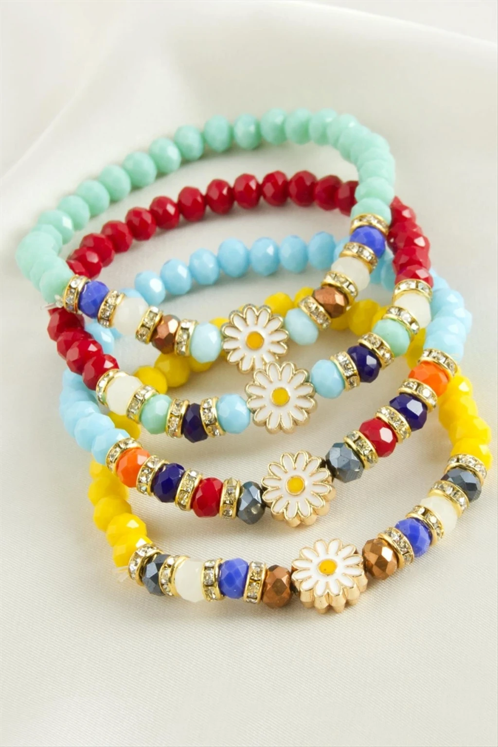 Bileklik; Ürün malzemesi metal ve kristaldir. Kristal taşlar misina üzerine dizilerek oluşturulmuştur.