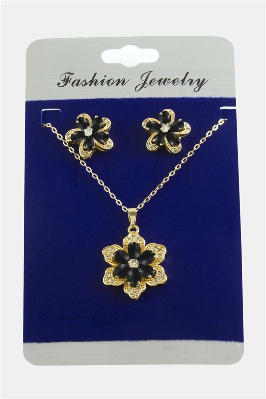 Kolye; Ürün malzemesi metal ve zirkon taştan üretilmiştir. 1 sınıf kaliteli malzeme kullanılmıştır. Ürün 1 adet kolye, ve 1 adet çift küpe vardır. Ürün zincir uzunluğu 45 santimdir. Ürün ucundaki taşlı aparat boyu 2 cmdir.