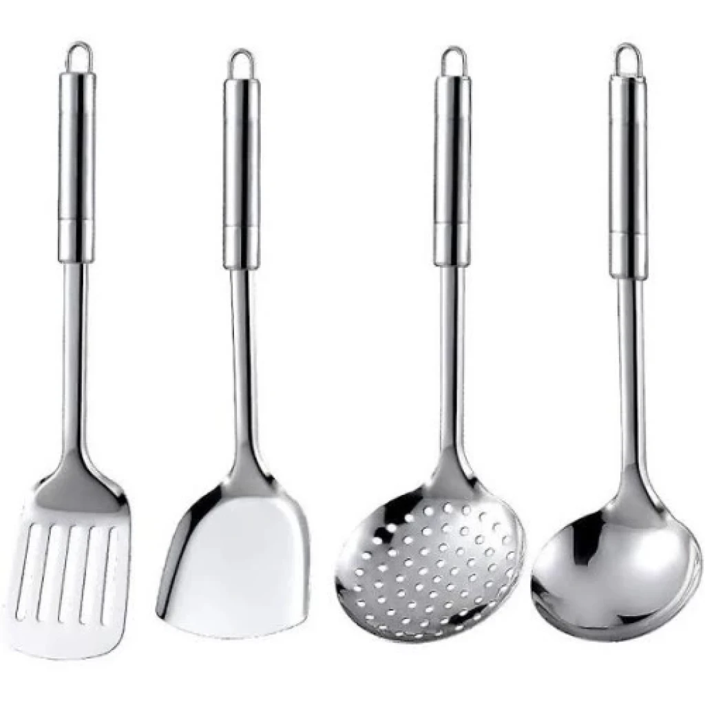 PASLANMAZ ÇELİK MUTFAK SETİPaslanmaz çelikten üretilen bu mutfak seti, dayanıklılık ve şıklığı bir araya getirerek mutfakta çeşitli işlemleri kolaylaştırır. Set, beş ana parçadan oluşur:Paslanmaz Stand: Fonksiyonel ve sağlam bir temel sunarak diğer mutfak araçlarını düzenli bir şekilde saklar. Mutfak tezgahınızda düzeni sağlamak için idealdir.Kepçeler (2 Parça): İki farklı boyutta tasarlanmış kepçeler, yemek pişirme veya servis yapma işlemlerinizde size esneklik sunar. Paslanmaz çelik malzeme, dayanıklılık ve hijyen sağlar.Spatula: Geniş ve düz yapısı ile kızartma, döndürme veya karıştırma işlemlerinde kullanılabilir. Paslanmaz çelik yapısı, uzun ömürlü ve güvenilir bir kullanım sunar.Kevgir: Pratik bir kullanım sunan kevgir, çorba, makarna veya diğer yemekleri süzmek için idealdir. Paslanmaz çelik malzeme, temizliği kolaylaştırır.Bu paslanmaz çelik mutfak seti, mutfakta çeşitli görevler için gereken temel araçları bir araya getirerek kullanıcıya pratiklik ve dayanıklılık sağlar.Paket İçeriği1 adet paslanmaz çelik mutfak seti
