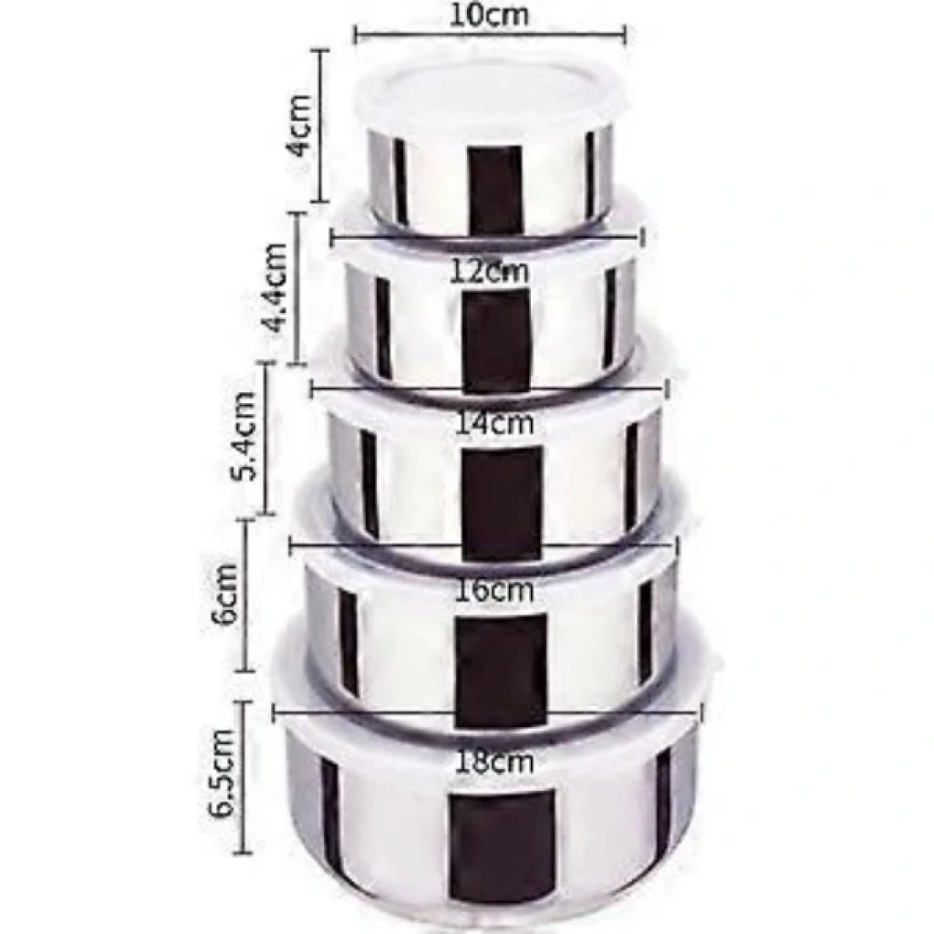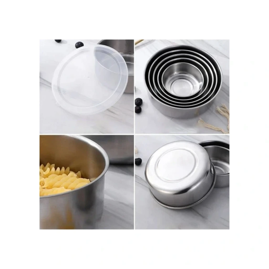 PASLANMAZ ÇELİK YEMEK SAKLAMA KABI SETİÜrün ÖzellikleriYüksek kaliteli paslanmaz çelikten üretilmiştir, uzun ömürlü kullanım sunar ve sağlıklı gıda saklama imkanı sağlar.5 farklı boyutta saklama kabı içerir (10 cm, 12 cm, 14 cm, 16 cm, 18 cm). Gıdaların tazeliğini koruyan ve hava geçirmez kapaklara sahiptir. Gıda saklama, taşıma ve buzdolabında düzen sağlamak için idealdir.Paslanmaz çelik yüzeyi sayesinde kolayca temizlenebilir, hijyenik bir kullanım sağlar. Mutfağınıza şıklık katar. Yemek hazırlığı sonrası artan gıdaların saklanması, meyve, sebze, tahıl ve bakliyat gibi gıdaların düzenli bir şekilde muhafazası, piknik, seyahat veya iş yerinde gıda taşıma için ideal bir saklama kabı setidir. Bu set, hem sağlıklı hem de pratik bir saklama çözümü sunar. Paslanmaz çelik yapısı sayesinde uzun ömürlüdür ve farklı boyut seçenekleriyle her ihtiyaca uygundur.Paket İçeriği1 adet Paslanmaz Çelik Saklama Kabı Seti.