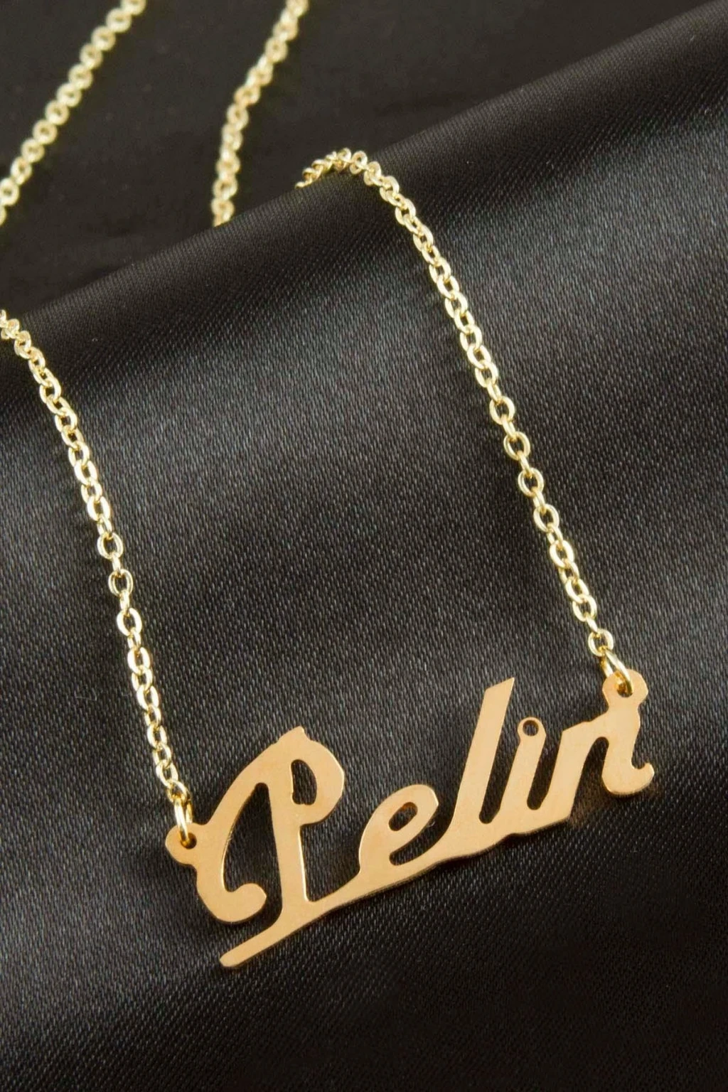 Pelin isimli kolye. İsimli kolye pirinç madeninden ve altın kaplamalıdır. Kişiye özel üretilmektedir.Yazdırmak istediğiniz ismi bize mesaj olarak iletmeniz gerekmektedir. Kullanıma bağlı olarak uzun süre kullanıma uygundur. Ürün malzemesi 1.sınıf kalitededir. Ürün ve zinciri sarı renktedir. Ürün zincir boyu 45 cm ve ürün üzerindeki isimler yaklaşık 3 cmdir. İsim boyları ürün ismine göre degişiklik göstermektedir.