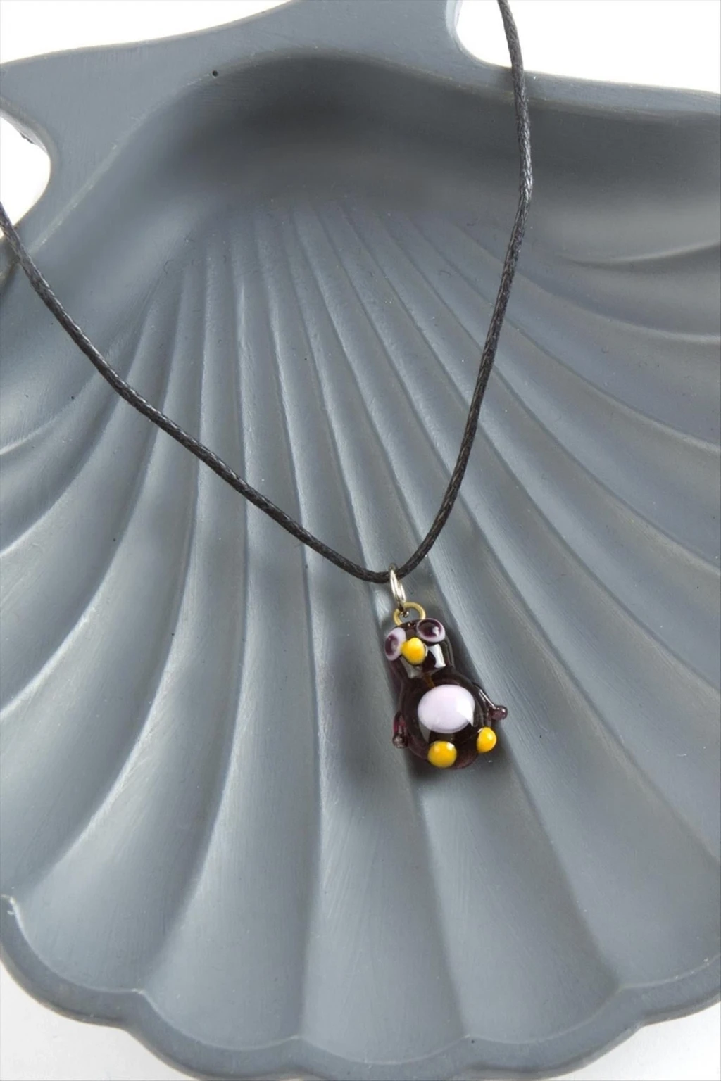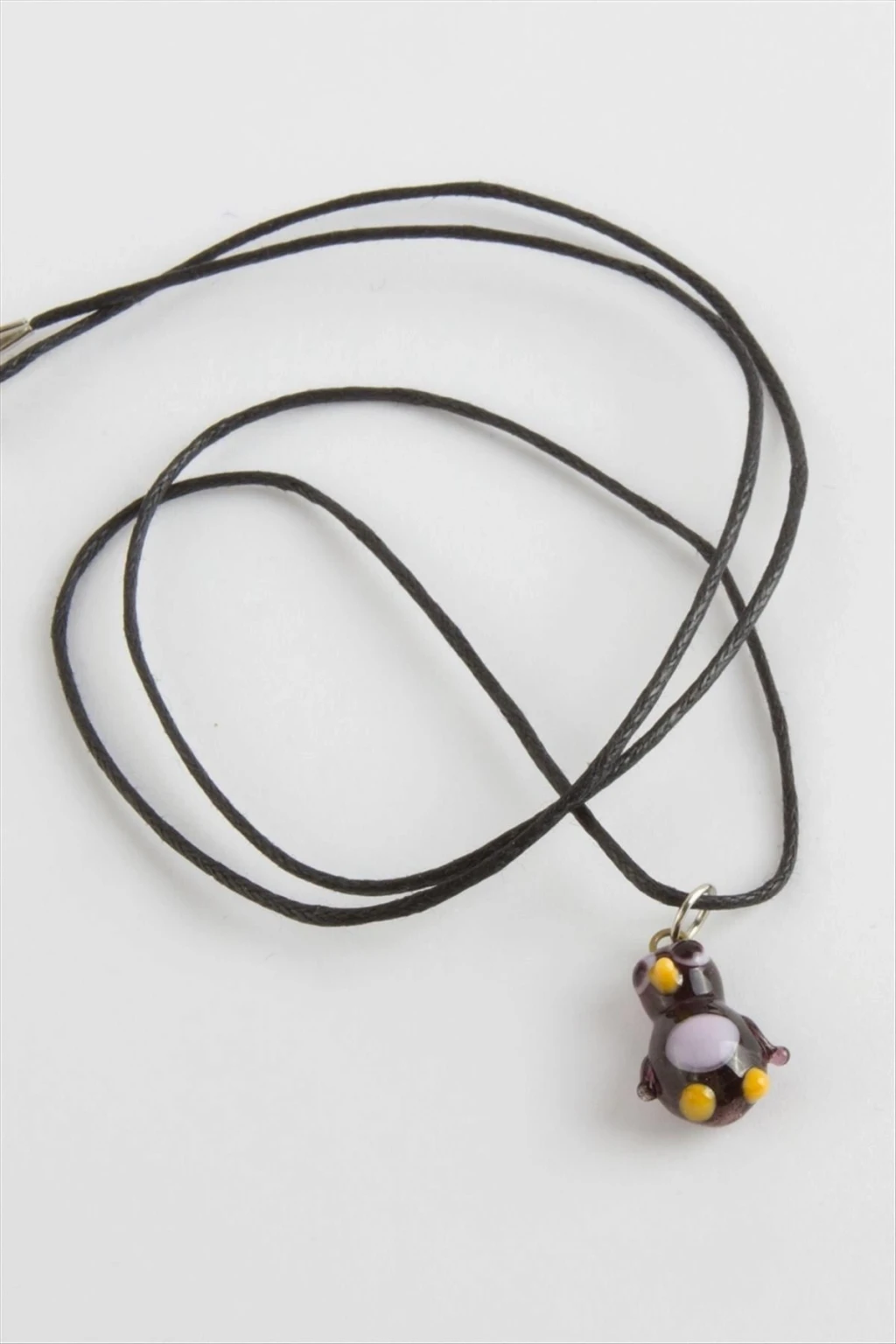 Cam Kolye; Kordonu vinlex deridir. Ürün ustalarımız tarafından atölyemizde tek tek el işçiliği ile üretilmektedir. İmalatımız da yerli cam ve orijinal italyan cam kullanılmaktadır. Cam ürünlerinde sanatsal bir işçilikle çalışılmaktadır. Ürün cam boyu 1,5 cm ve ip boyu 45 cmdir.