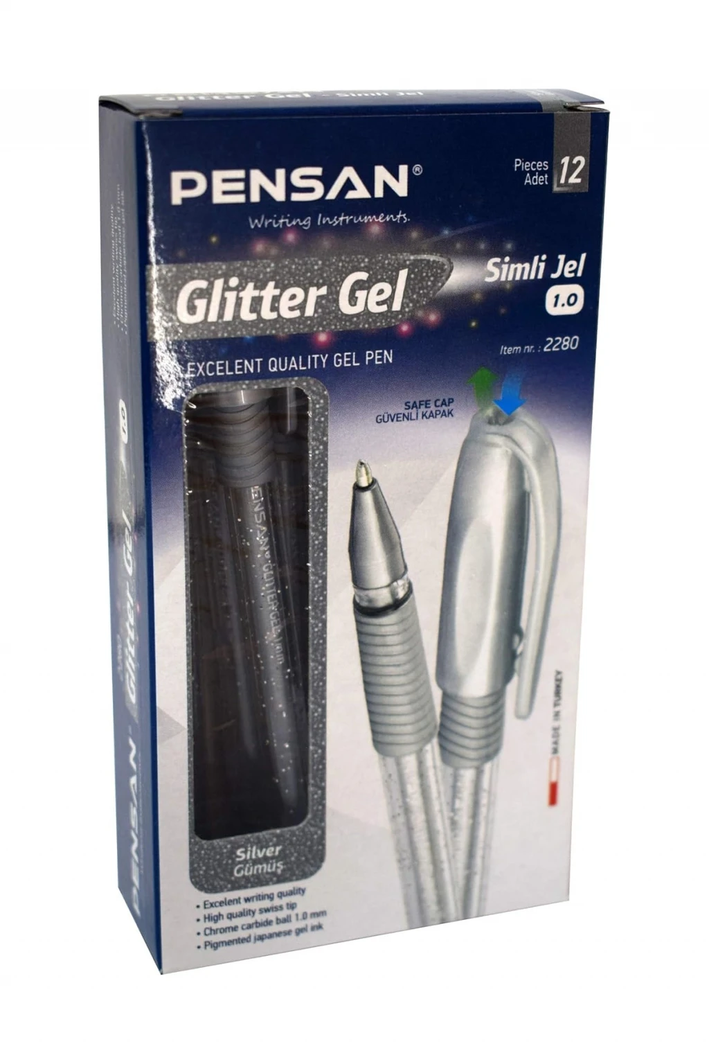 Pensan Glitter Simli Jel Kalem 1 Mm Gümüş 12'li