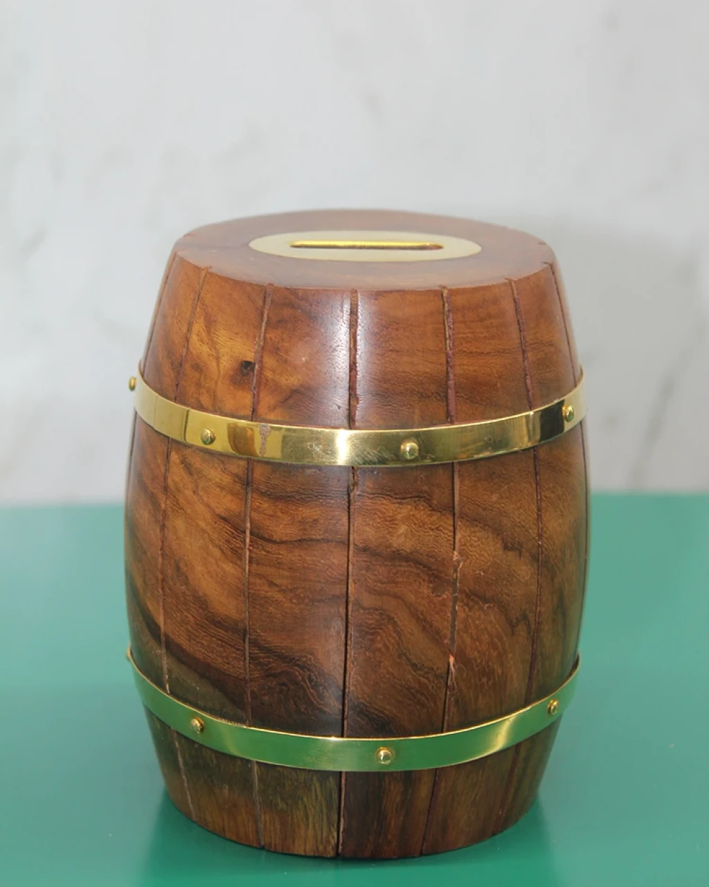 Pirinç Detaylı Fıçı Kumbara Model 4