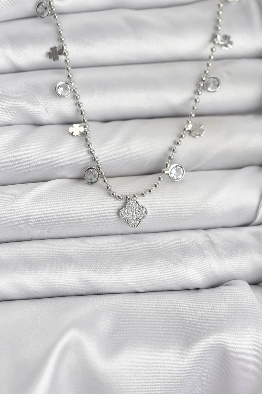 ietaks™ Pirinç Gümüş Renk Yonca Model Kadın Kolye
