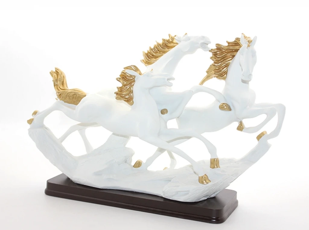POLYESTER 3'LÜ ŞAHLANMIŞ AT FİGÜRÜÜrün ÖzellikleriPolyester 3’lü şahlanmış at figürü, zarif ve güçlü tasarımıyla dekorasyonunuza şıklık katar. Figürler dayanıklı polyester malzemeden üretilmiş olup, detaylı işçiliği sayesinde gerçekçi bir görünüm sunar. Taban kısmı doğal ahşaptan yapılmış olup, figürün sağlam ve dengeli durmasını sağlar. Estetik ve sanatsal yapısıyla ev, ofis veya vitrin dekorasyonu için mükemmel bir seçimdir. Zarif duruşlarıyla hareketin ve özgürlüğün sembolü olan bu figürler, klasik ve modern dekorasyon stilleriyle uyum sağlar.Paket İçeriği1 adet Polyester 3'lü Şahlanmış At Figürü