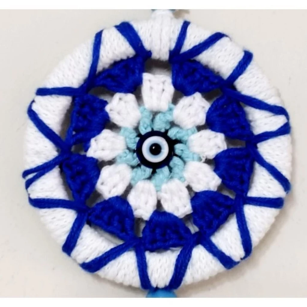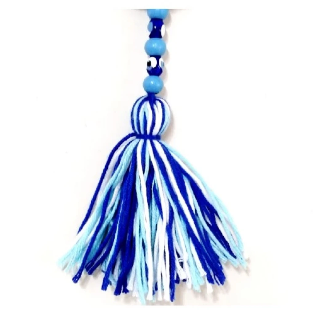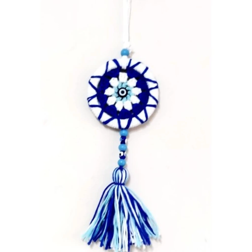 Ponponlu Nazar Boncuğu Desenli El Yapımı Mini Kapı, Duvar ve Araba Süsü