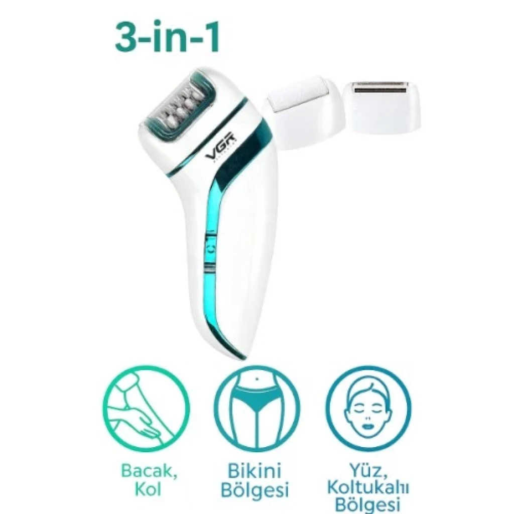 PROFESYONEL 3 BAŞLIKLI EPİLASYON ALETİÜrün ÖzellikleriProfesyonel 3 Başlıklı Epilasyon Aleti, farklı bölgeler için özel olarak tasarlanmış üç farklı başlığı sayesinde pratik ve etkili bir kullanım sunar. Yüz, bacak, koltuk altı, bikini bölgesi ve hassas bölgelerde kullanılabilir. Döner epilasyon başlığı istenmeyen tüyleri kökünden alarak pürüzsüz bir cilt sağlar. Tıraş başlığı hızlı ve kolay kullanım için idealdir, topuk törpü başlığı ise ayak bakımında etkili sonuç verir. Ergonomik tasarımı sayesinde elde rahat kavrama sağlar ve uzun süreli kullanımda bile konfor sunar. Şarjlı yapısıyla kablo karmaşası olmadan pratik kullanım imkânı sunar.Paket İçeriği1 adet Profesyonel 3 Başlıklı Epilasyon Aleti