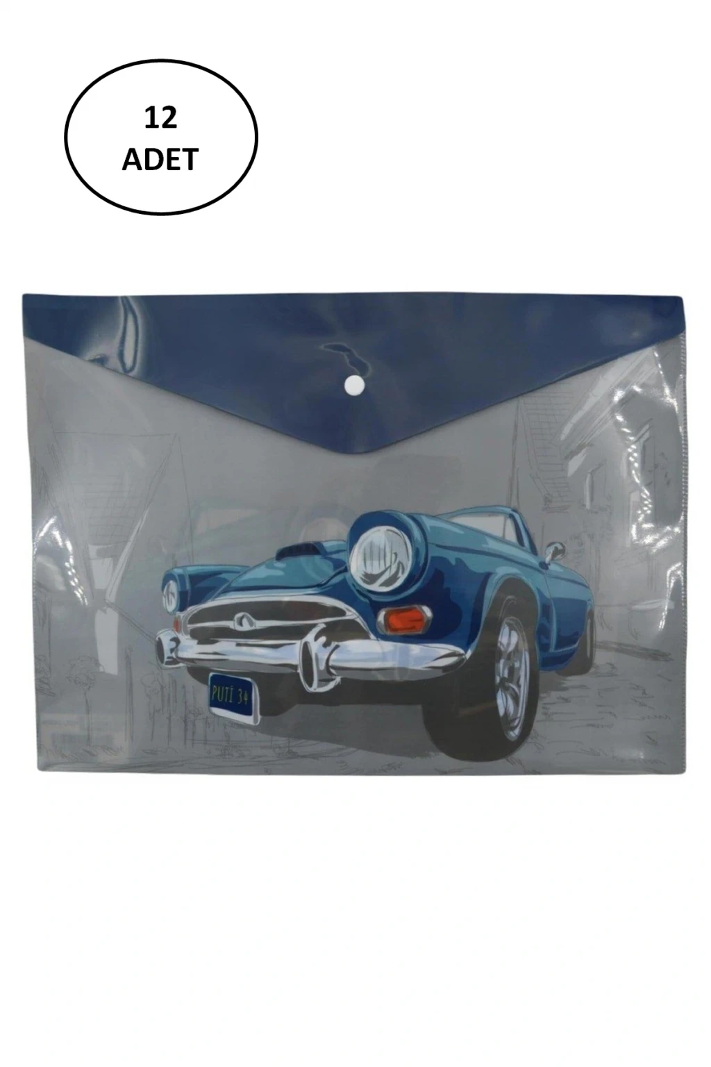 Puti Desenli A4 Çıtçıtlı Dosya 2 Taşıt Desenli (12 Li Paket)