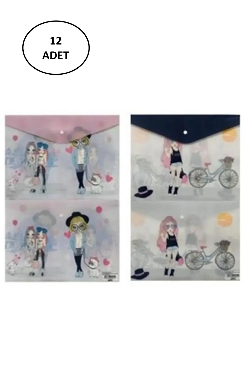 Puti Desenli A4 Çıtçıtlı Dosya Kızları 2 Desen (12 Li Paket)