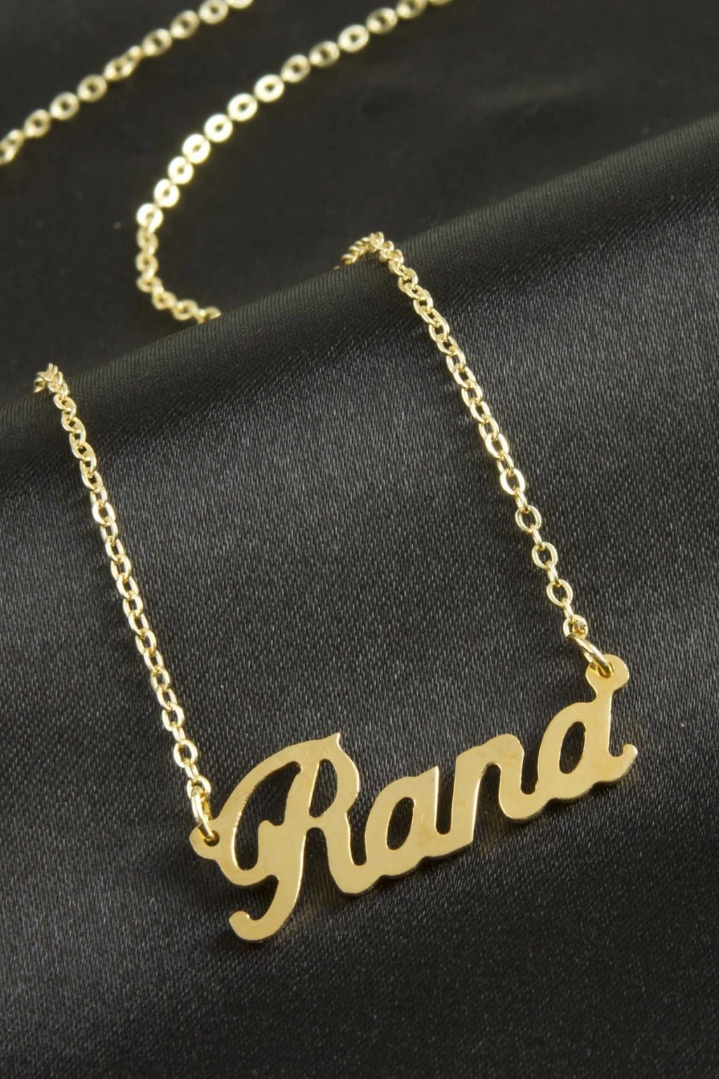 Rana isimli kolye. İsimli kolye pirinç madeninden ve altın kaplamalıdır. Kişiye özel üretilmektedir.Yazdırmak istediğiniz ismi bize mesaj olarak iletmeniz gerekmektedir. Kullanıma bağlı olarak uzun süre kullanıma uygundur. Ürün malzemesi 1.sınıf kalitededir. Ürün ve zinciri sarı renktedir. Ürün zincir boyu 45 cm ve ürün üzerindeki isimler yaklaşık 3 cmdir. İsim boyları ürün ismine göre degişiklik göstermektedir.