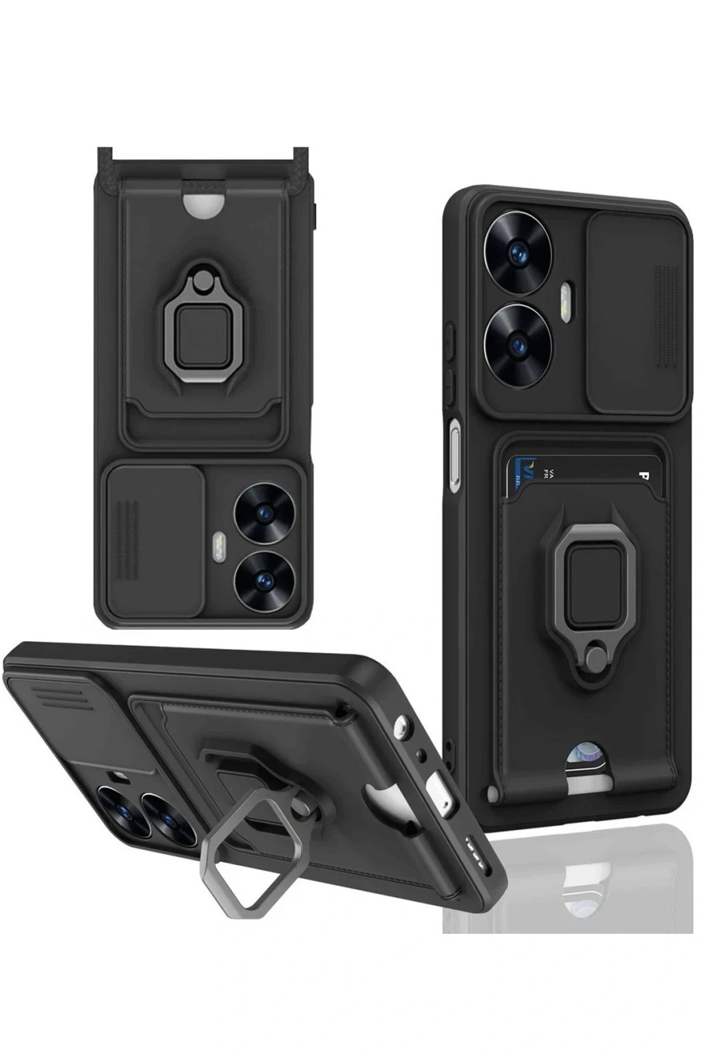 Realme C55 Kılıf Zuma Kartvizitli Yüzüklü Silikon - Siyah